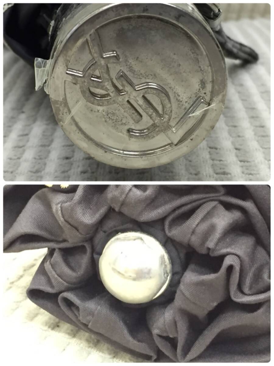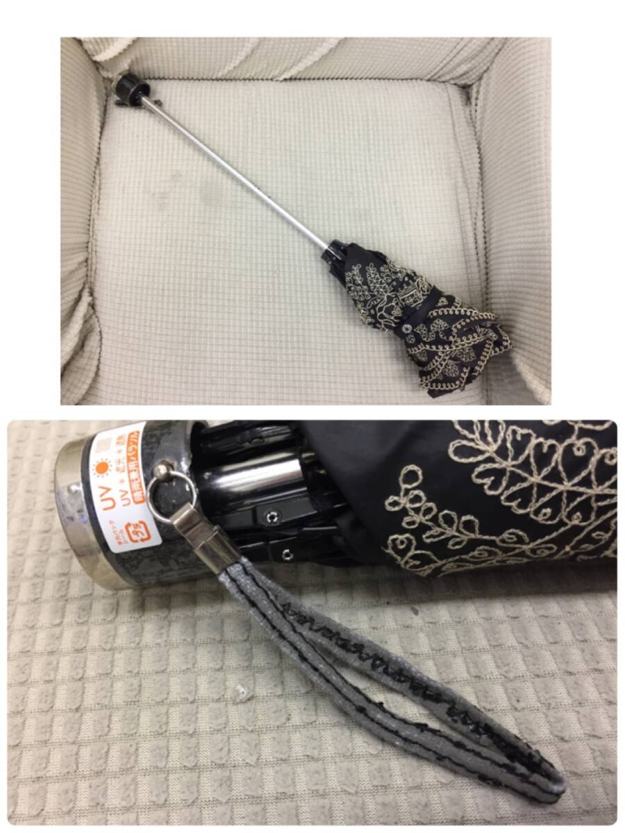 ◎サイズ 傘を伸ばした時と縮めた時の全長 最長:約 54cm 最短:約 24cm ※取っ手部分も込める。 重量:約 256g ※多少誤差は生じると思います。 -------------- ◎状態 中古。 なるべく丁寧に丸めましたが、 傘にはシワなど多数付いています。 傘の専門店ではなく、あくまで一般家庭での 保管品です。ご了承ください。 画像1にあるものが全てです。 収納袋はありません。 -------------- 画像2のシールには晴雨兼用と 書いてありますが、画像7の 中のタグには日傘と主として企画 しています。と記載があります。 金属部分は全体的にくすんでいます。 画像4.5のように汚れ、日焼け、など 使用感があります。 傘は全体的に、ホコリっぽい 触り心地がする気がします。 画像10のようにストラップ部分は ボロボロです。現在進行形で 剥がれた表面がボロボロと 剥がれ落ちています。 美品ではありません。