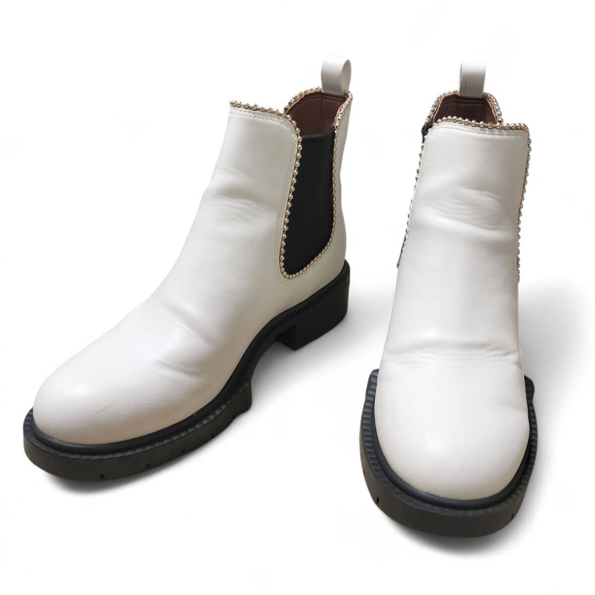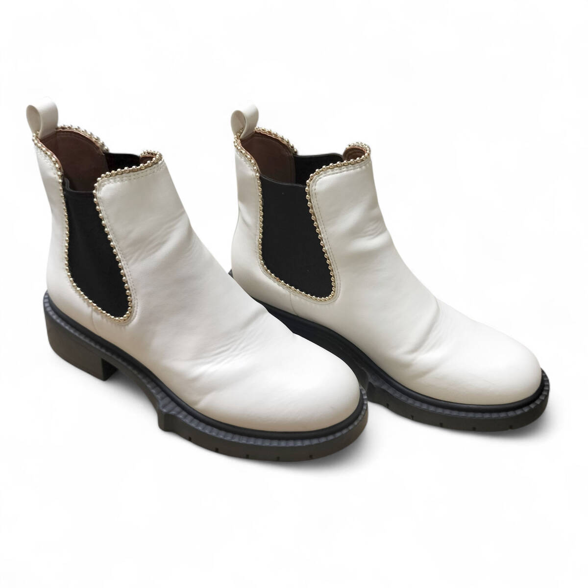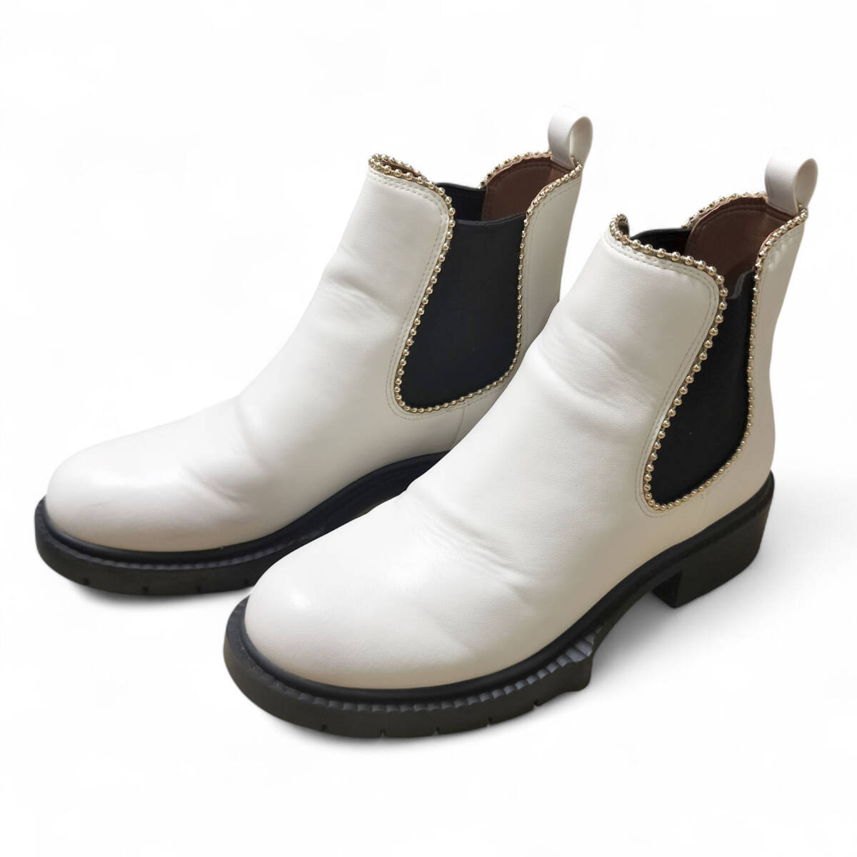 【美品】COACH コーチ サイドゴアブーツ ブーツ ショートブーツ ホワイト 白 レザー 23㎝