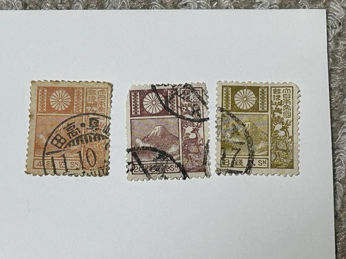 日本切手 富士鹿 3枚セット 使用済み
