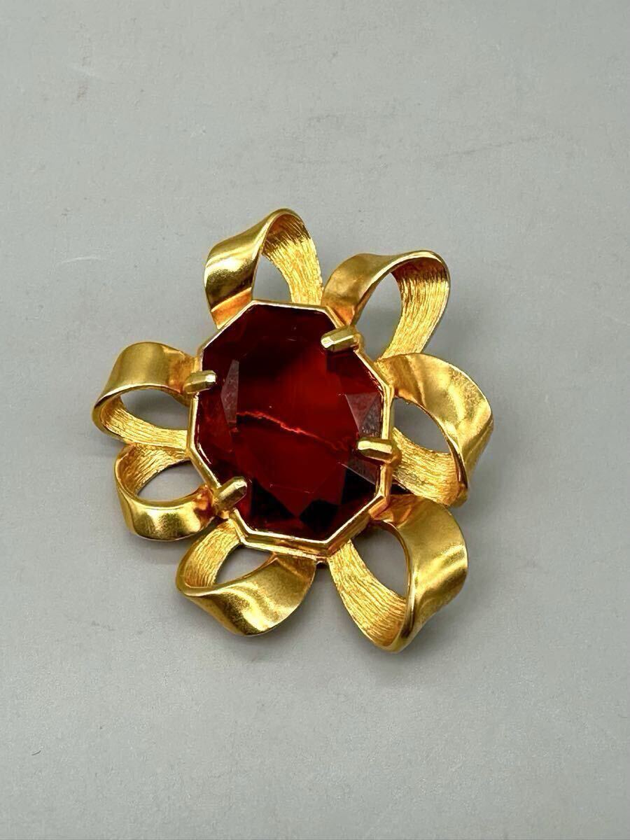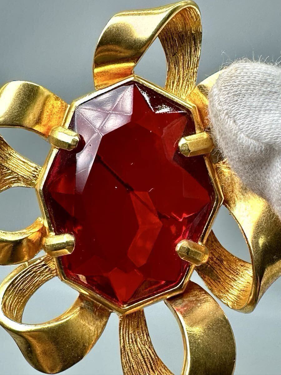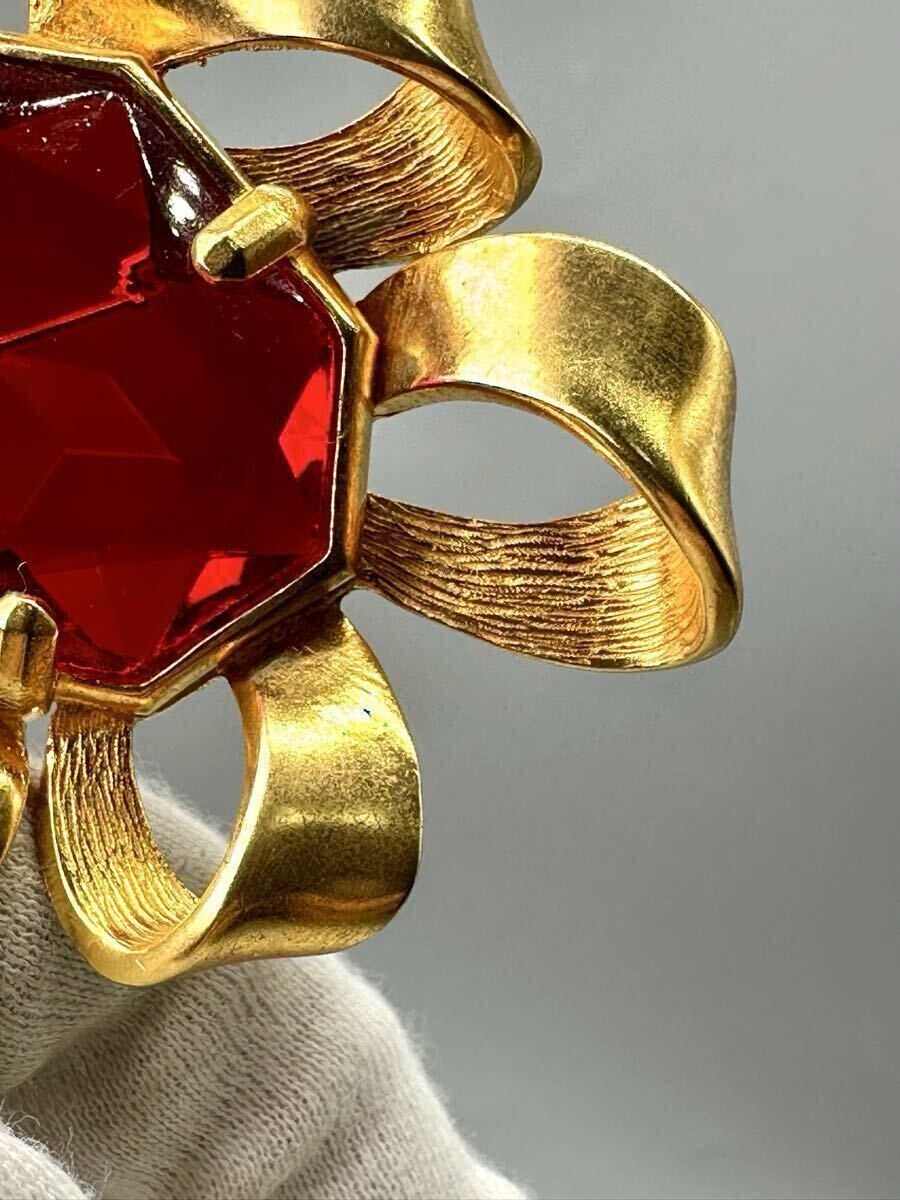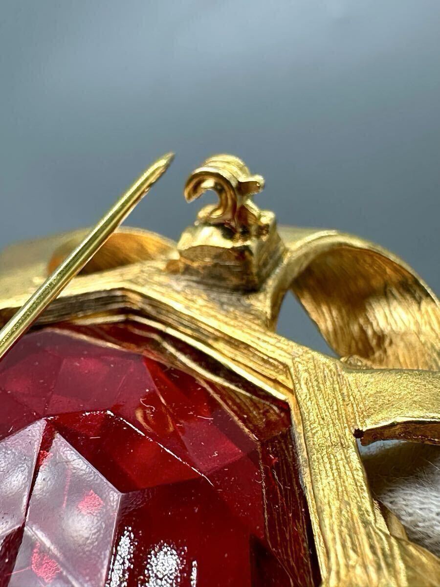 Christian DIOR ディオール ブローチ 紅宝石 カラーストーン アクセサリー ゴールドカラー ルビー 精美品 サイズ約6*7cm 重さ約50.6g