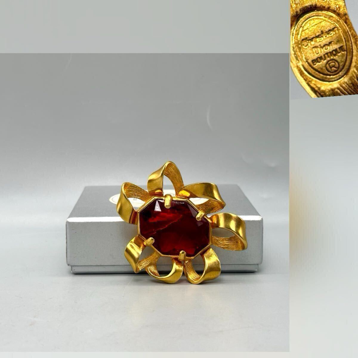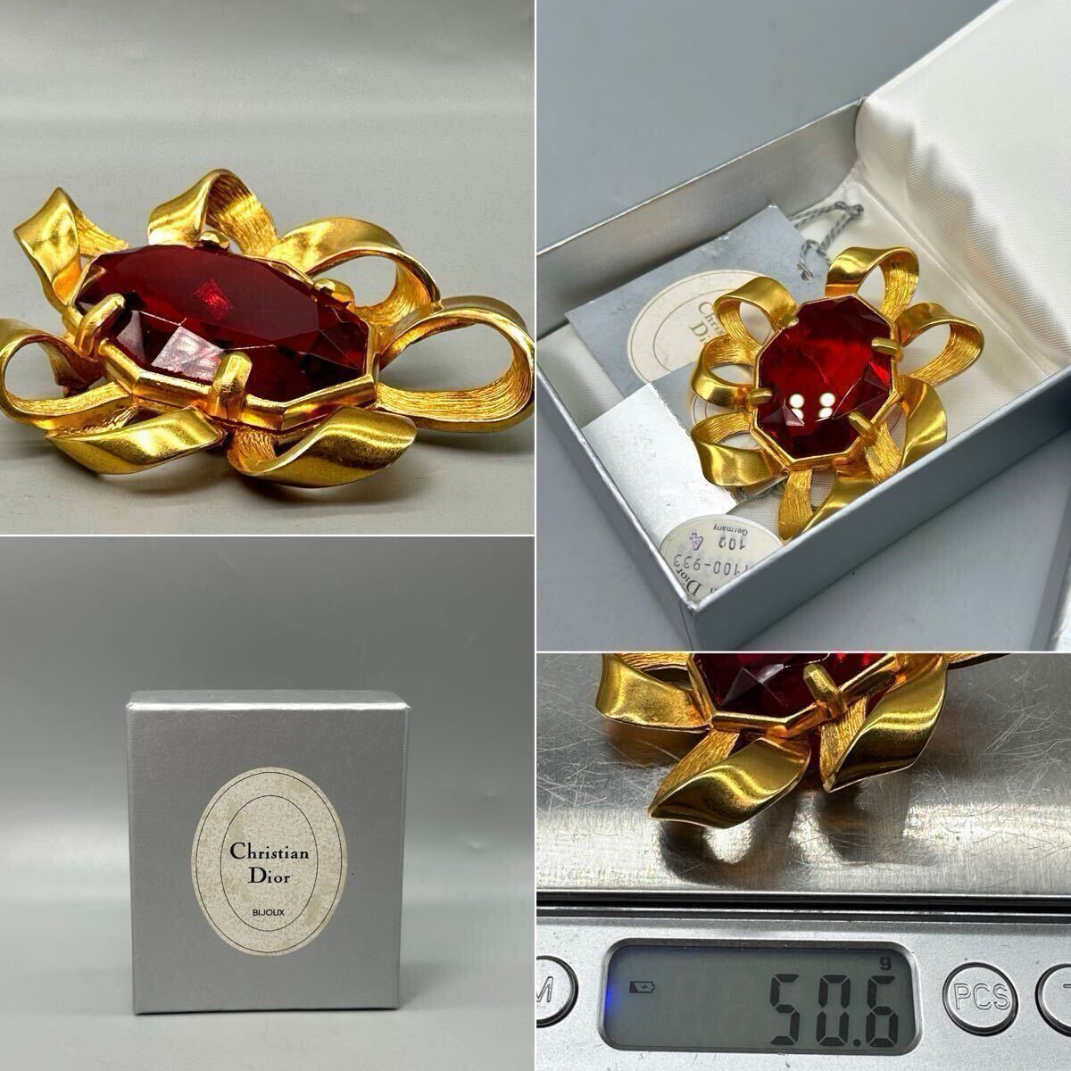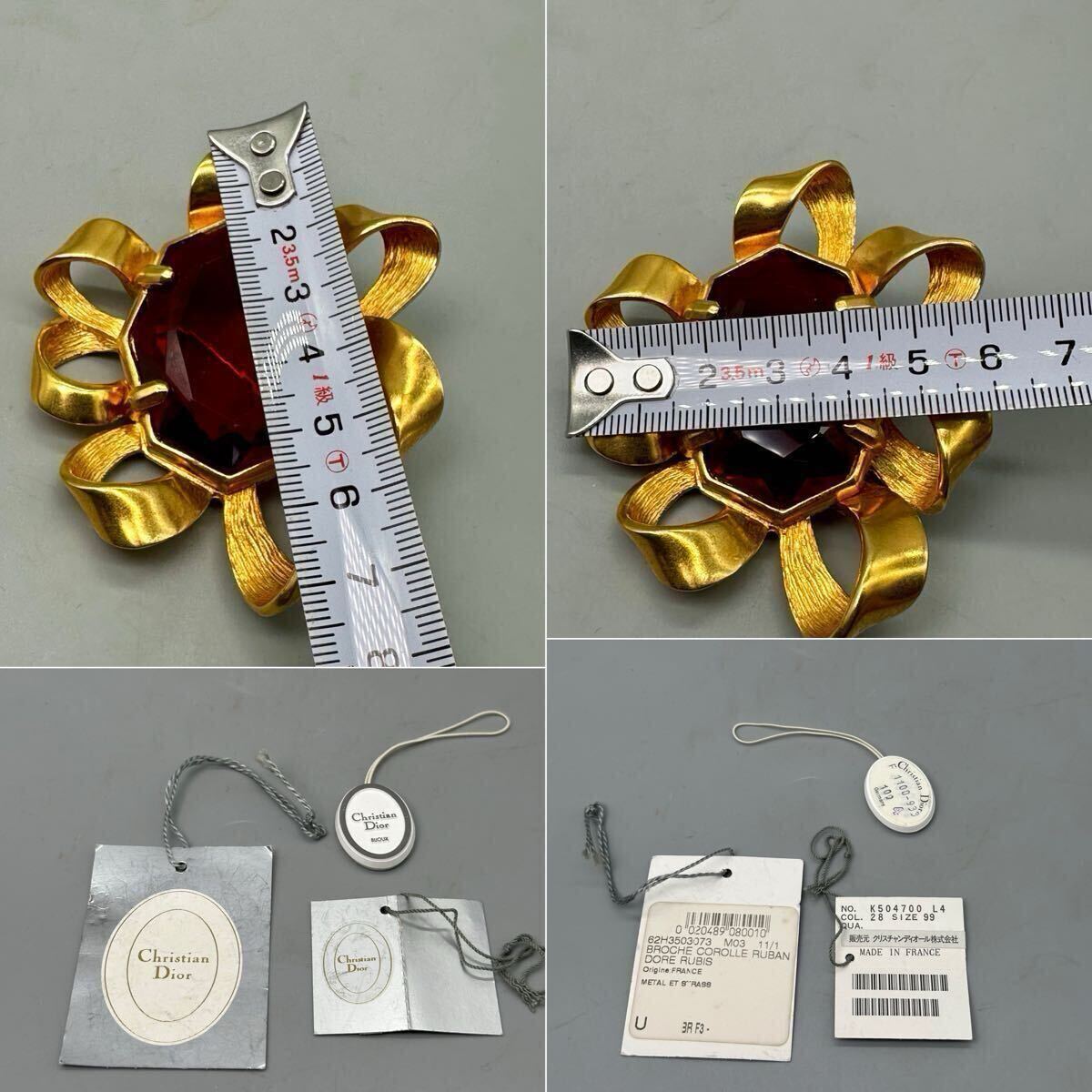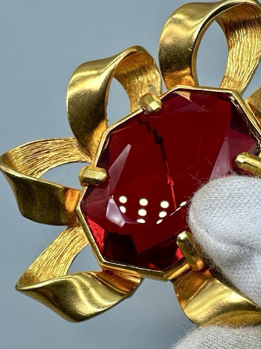 Christian DIOR ディオール ブローチ 紅宝石 カラーストーン アクセサリー ゴールドカラー ルビー 精美品 サイズ約6*7cm 重さ約50.6g