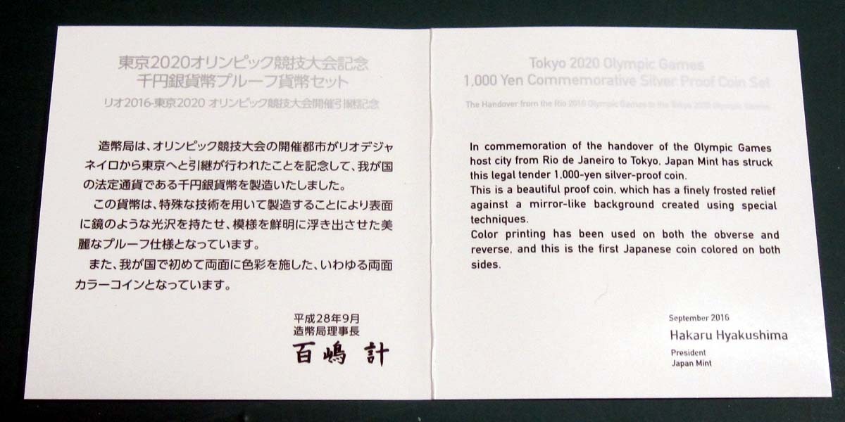 ★東京2020オリンピック 記念 1000円プルーフ銀貨★リオ2016-東京2020 引継★平成28年★ | |