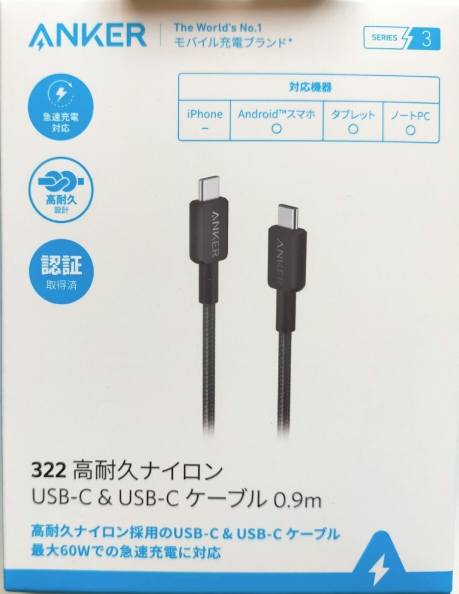 Anker 高耐久ナイロン USB-C & USB-C ケーブル 0.9m ブラック A81F5N11