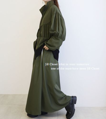 新品【送料185円】KHAKI**スタンド襟&バルーンスリーブ*ギャザーデザイン*羽織り ジャケット7706