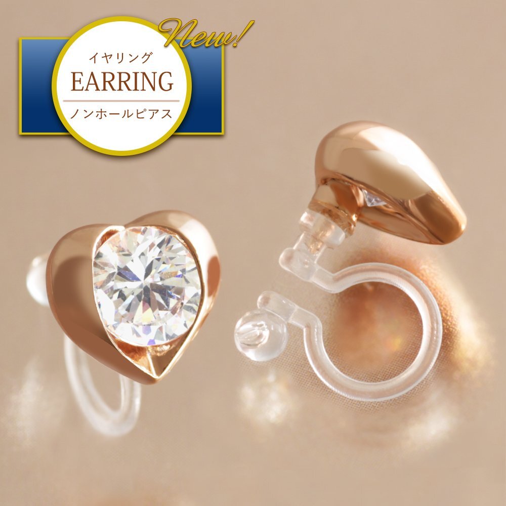 新品/イヤリング/K18GP/レディース/一粒/ハート/18金/18kコーティング/ピンクゴールド/ピアス見え/痛くない/樹脂/金属アレルギー/ダイヤ/CZ