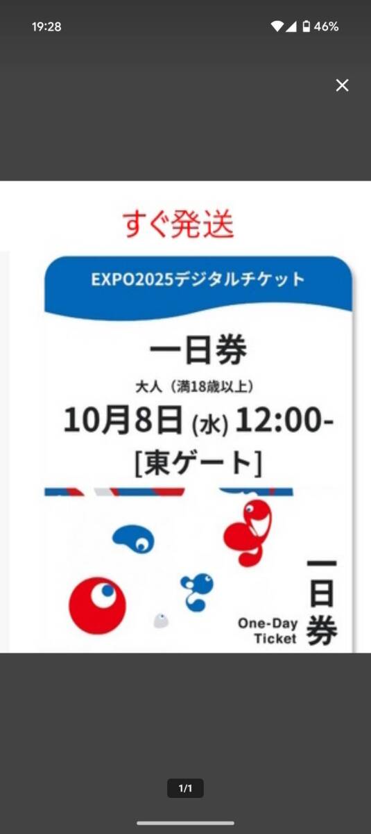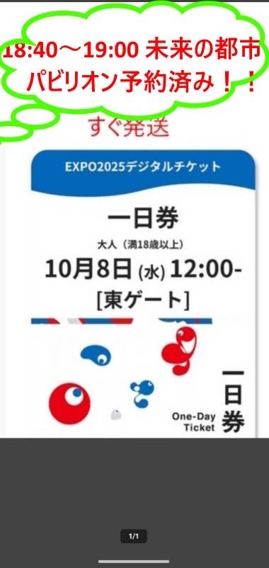 10月8日(水)東ゲート 12時 大阪万博 大人1日券 チケット 12:00~ EXPO 2025 万博 関西万博 10/8