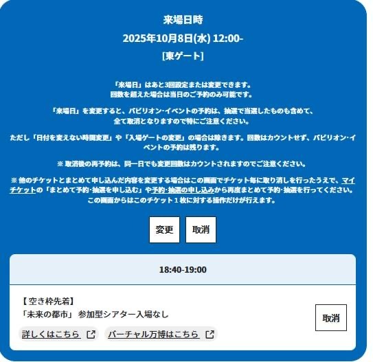 18:40〜19:00 未来の都市 パビリオン予約済み です!!