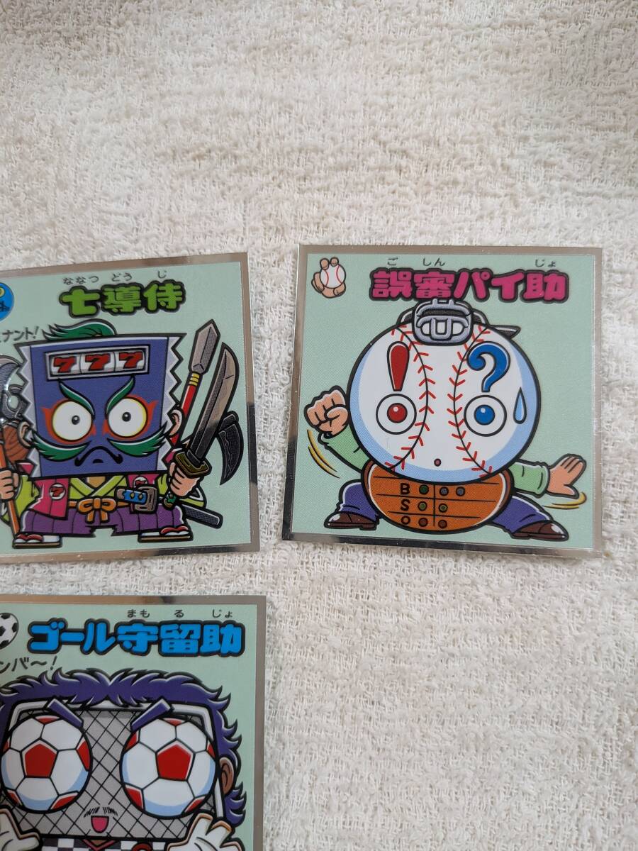 即決 七導侍←2枚 誤審パイ助 ゴール守留助←2枚  在庫5 美品  ビックリマン 33弾 ばら売り1枚の値段