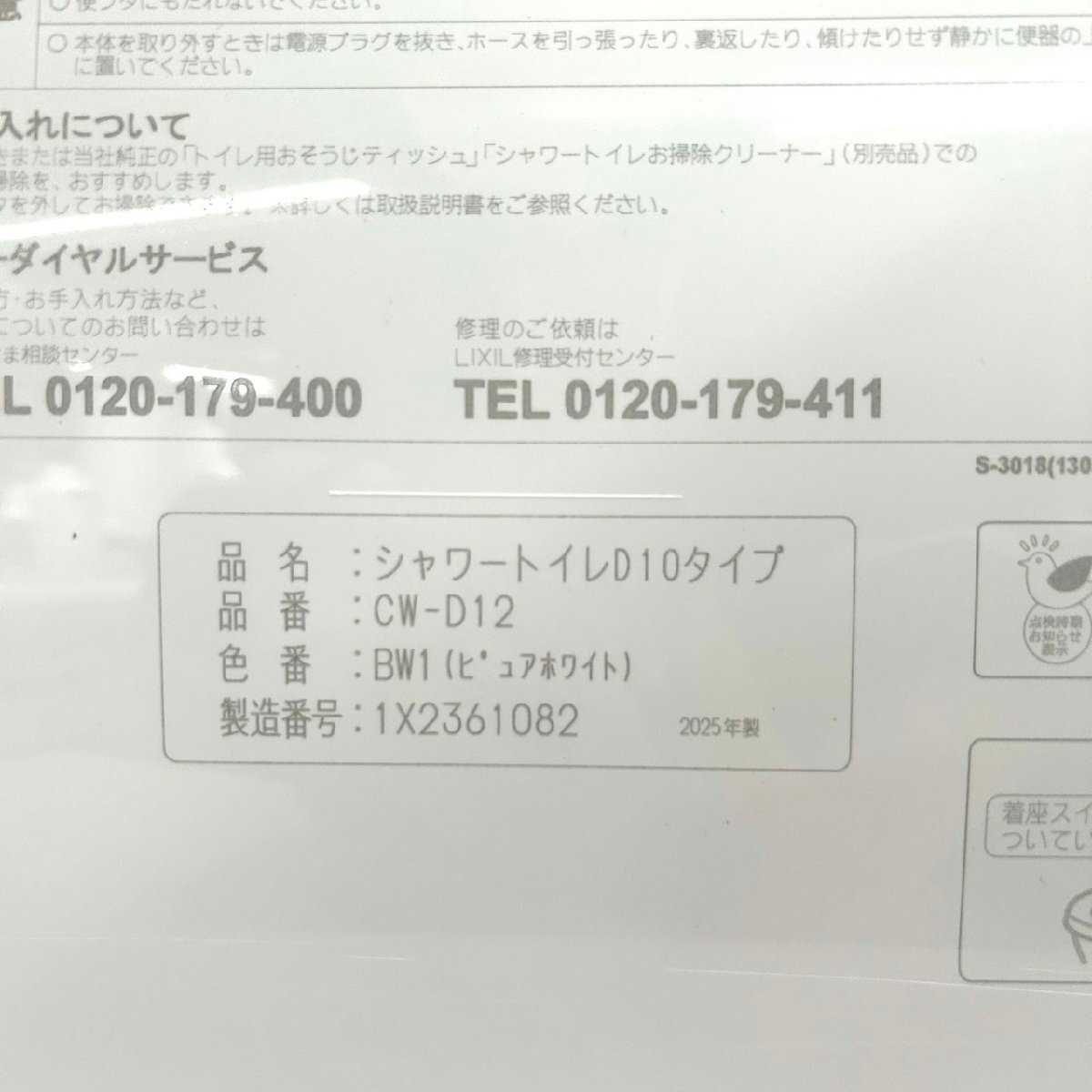 【現状品】LIXIL 電気温水器 シャワートイレD10タイプ CW-D12 リクシル 2025年製 gi10-40 |