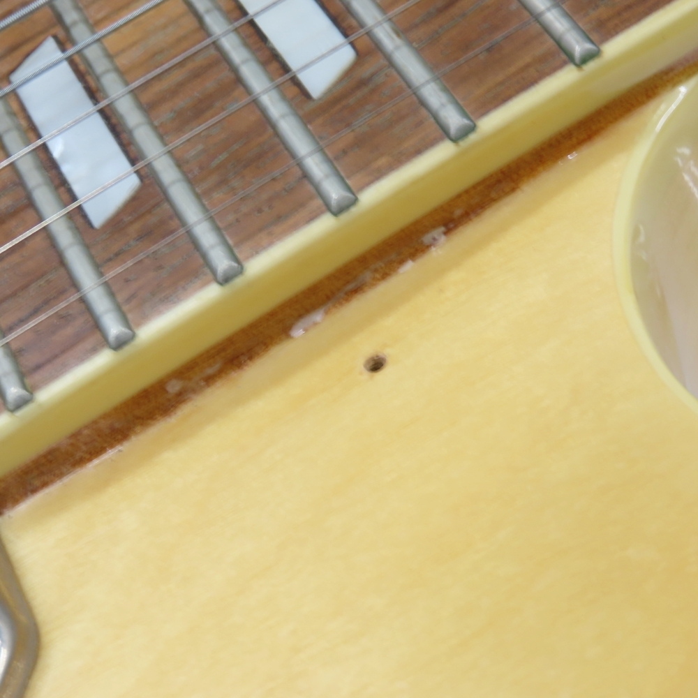 商品説明 | 中古の商品です。 ※簡単な音出しチェックは行っております。 ※ピックガードが外されており、ビスが欠品しております。 多少スレキズや金属部分のクスミ、 ネック根本ビス穴付近に塗装ヒビ等見受けられますが、 特に気になるようなダメージは見受けられず状態良いです。 多少フレットの減りやネックの順反りが見受けられます。 ※あくまでも素人目になりますので、ご理解の上よろしくお願いします。 ※当方専門店ではございませんので、詳しい内容等分かりかねます。 調整等も行っておりません。 | |