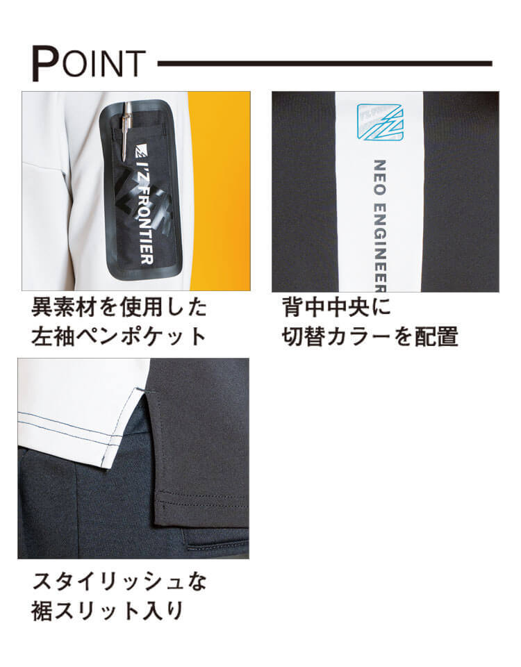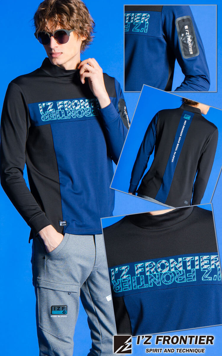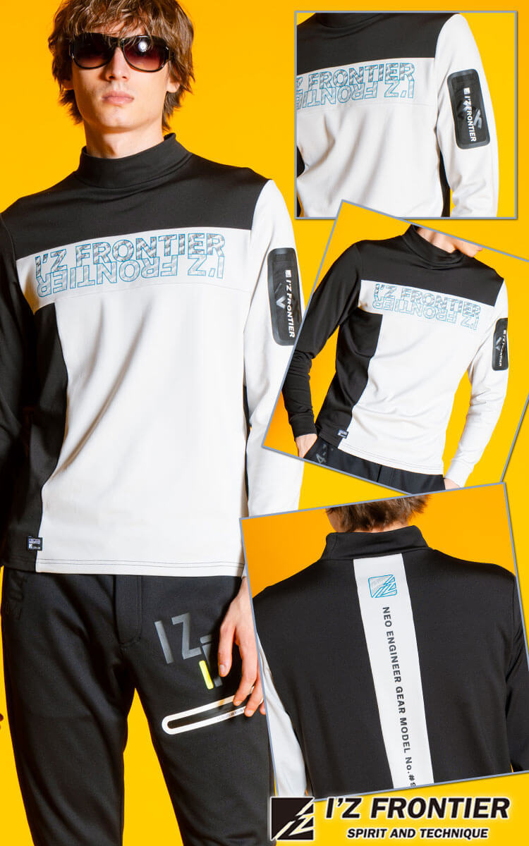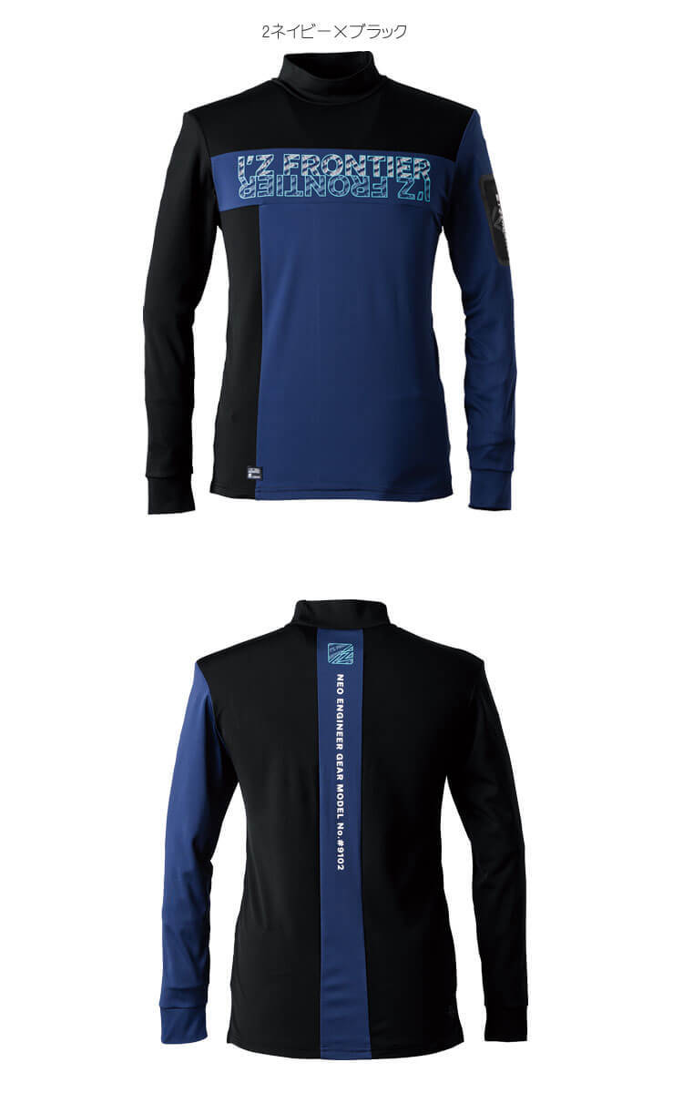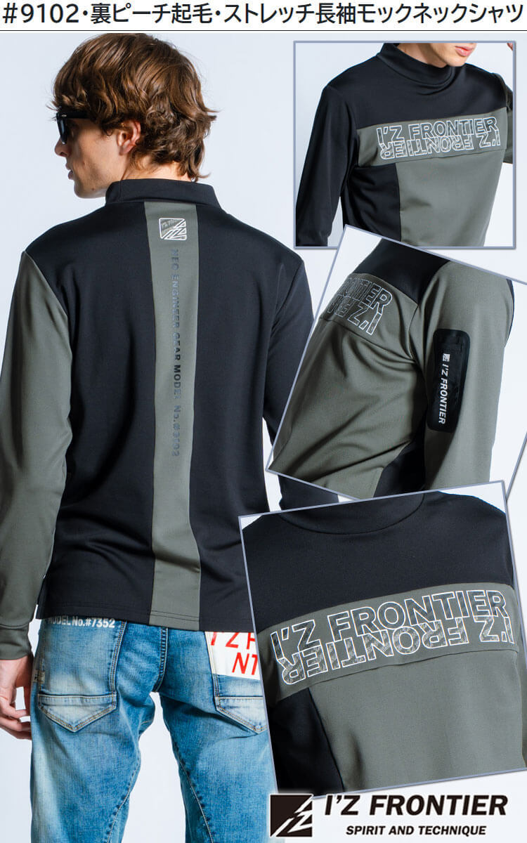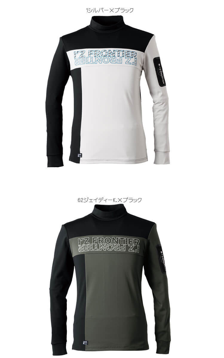 秋冬 アイズフロンティア 裏ピーチ起毛ストレッチ長袖モックネックシャツ 9102 Mサイズ 1シルバー×ブラック