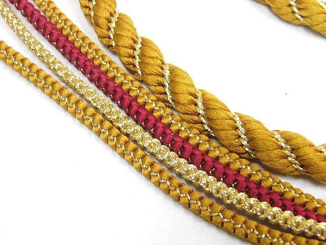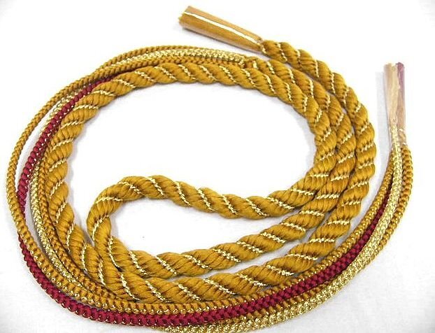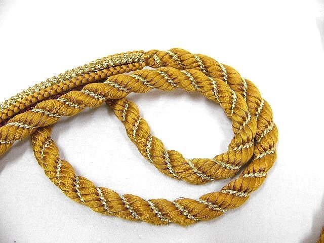 太い組紐の部分は黄土色系の櫨染色系のような色合いで金糸と組んである組紐です。