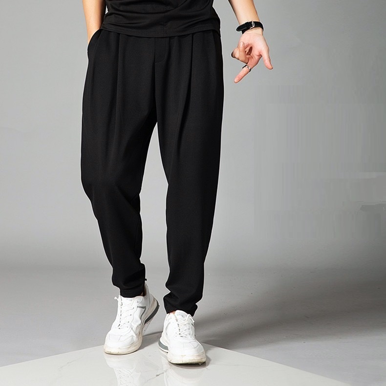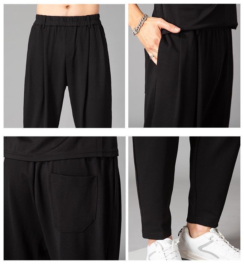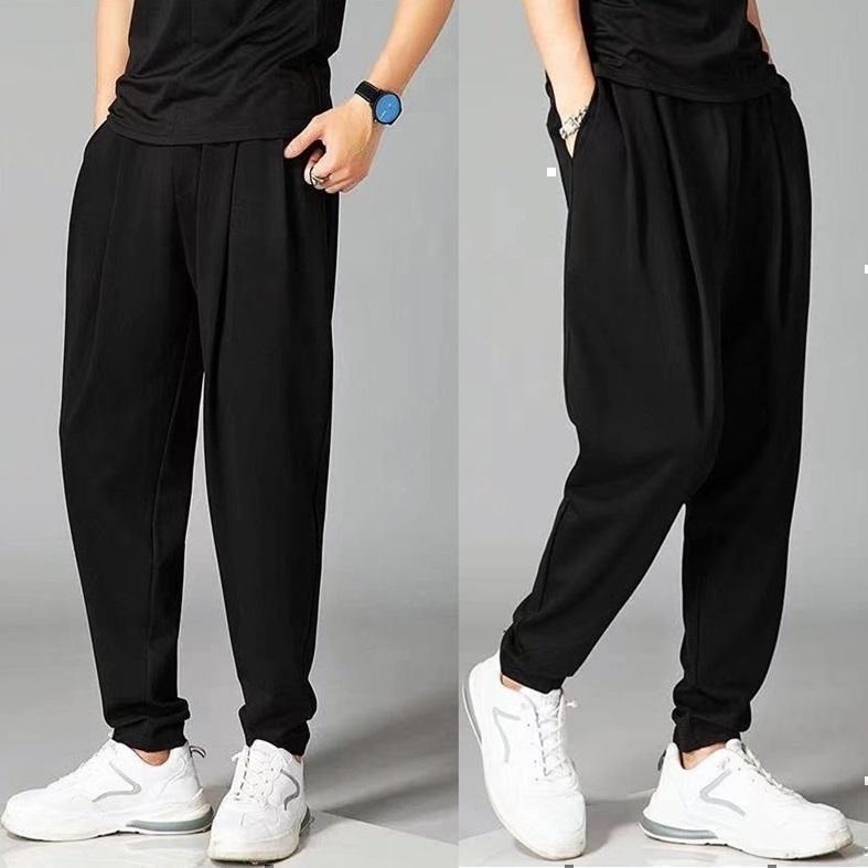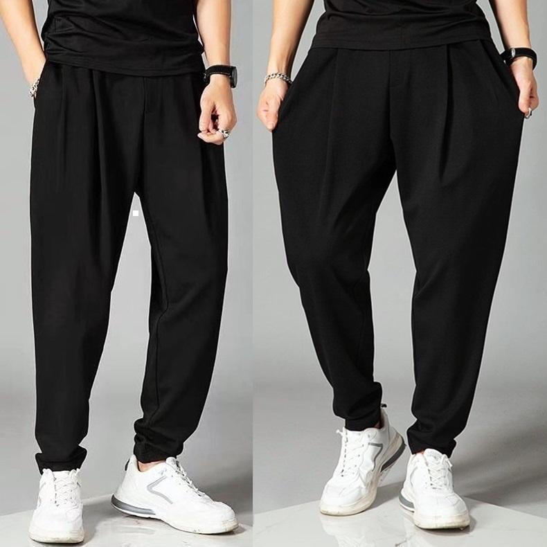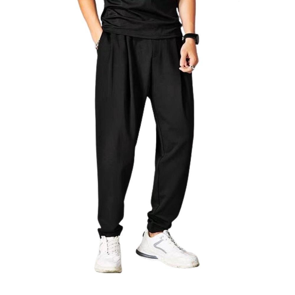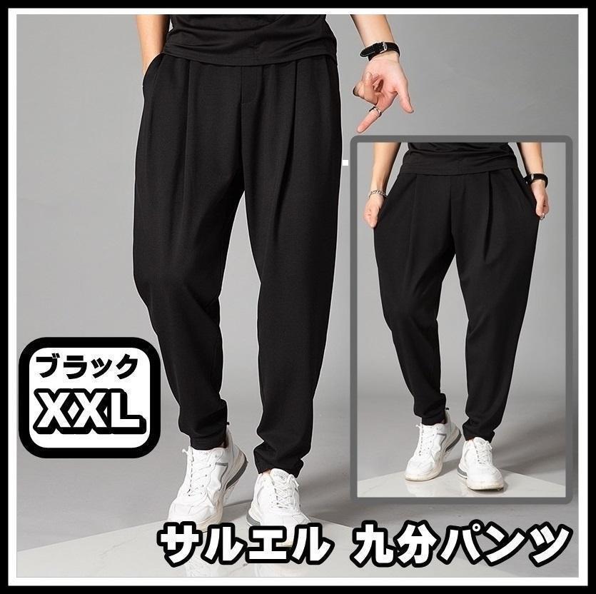 サルエル パンツ 無地 2XLサイズ ブラック 九分 メンズ レディース テーパード ストレッチ ワイドパンツ ゆったりパンツ ゴム 黒