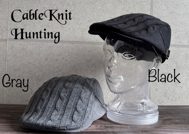 帽子 特価 ハンチング ケーブル編み ニットハンチング サイズ調整 メンズ レディース 男女兼用 大人コーデ 秋冬 グレー GY