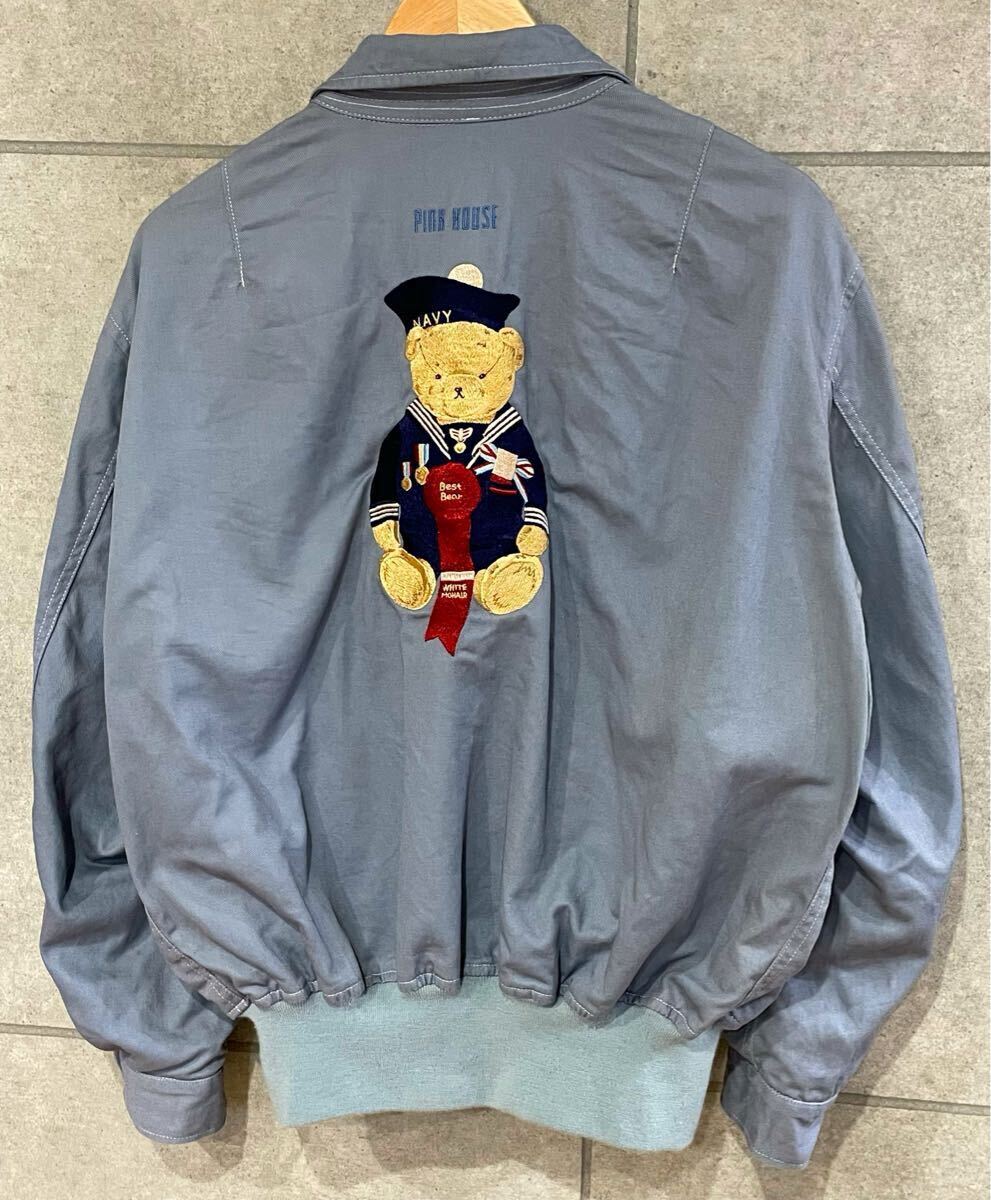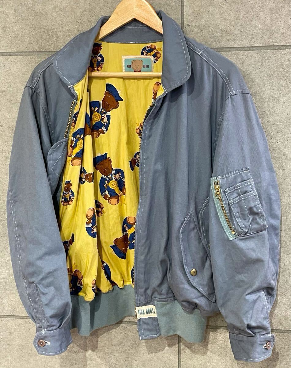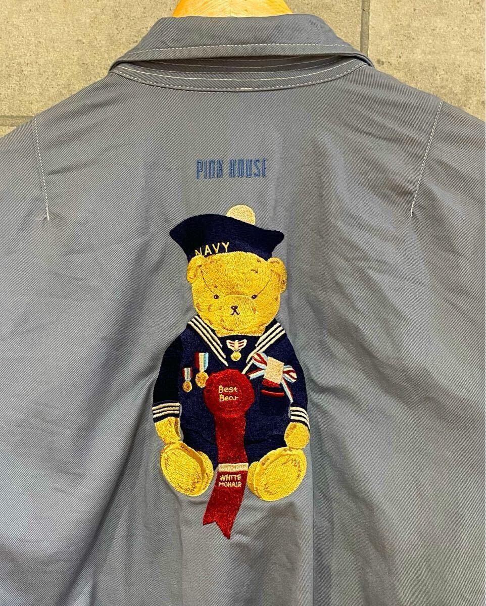大人気! PINK HOUSE ピンクハウス クマさん ベアー刺繍 MA-1風 ブルゾン ハリントンジャケット ブルー系 フリーサイズ 送料込 新規×