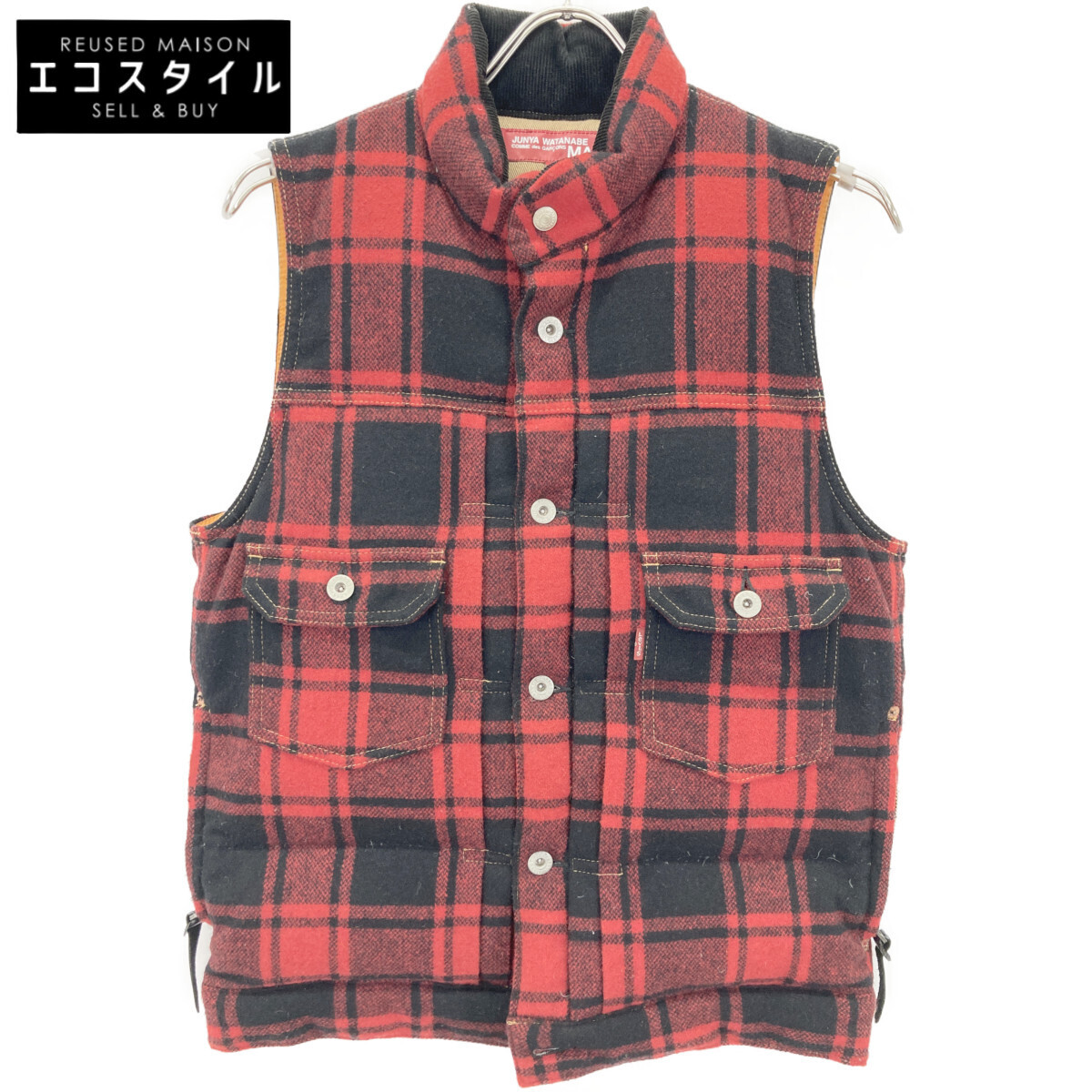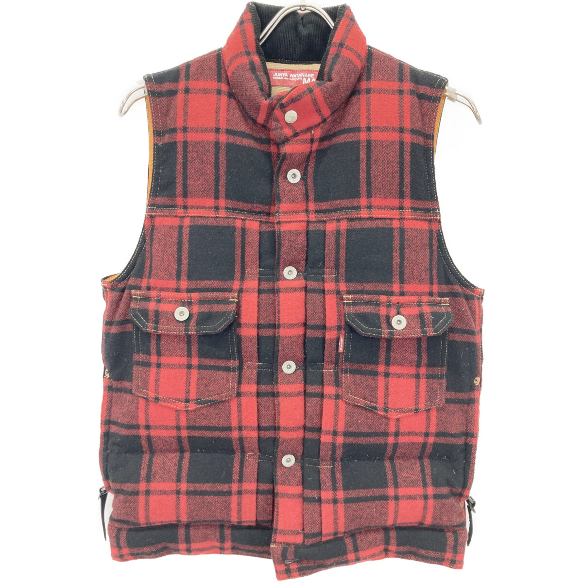 JUNYA WATANABE MAN ジュンヤワタナベマン × LEVI'S WN-V904 レッド チェック柄 ダウンベスト レッド XS ベスト ウール メンズ 中古