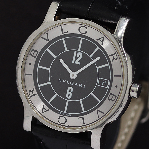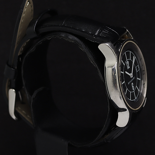 1円 稼働 ブルガリ ST35S ブラック文字盤 QZ ソロテンポ メンズ腕時計 0036300 9RKT MST