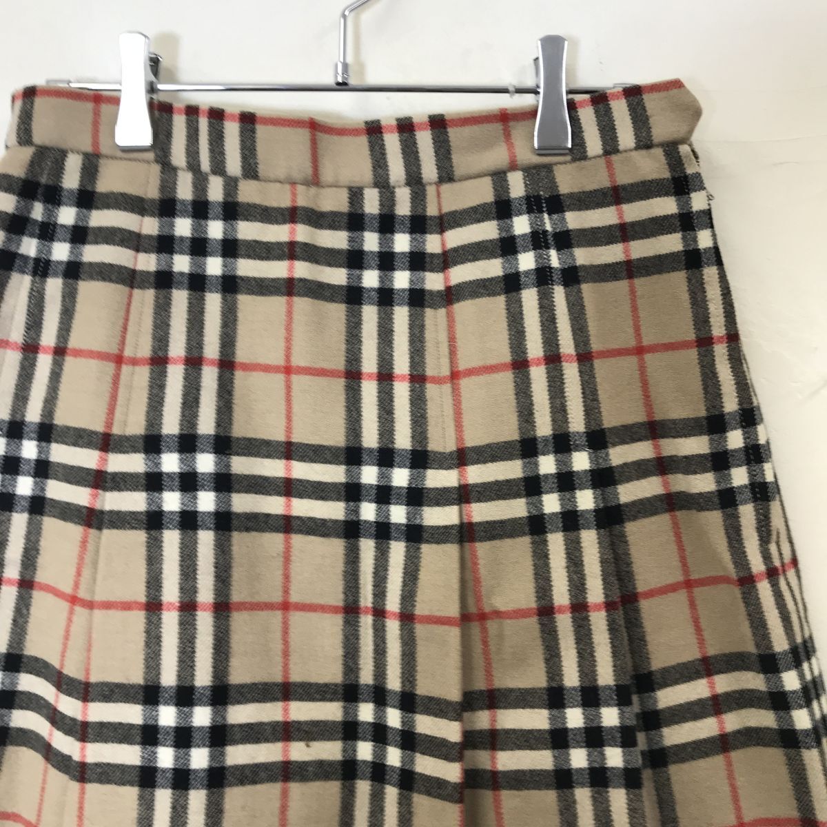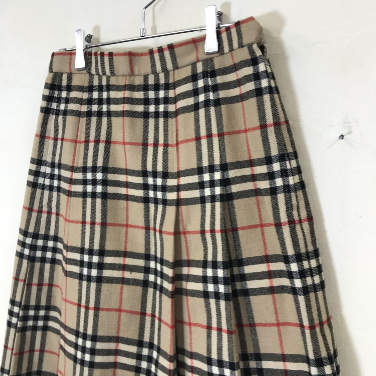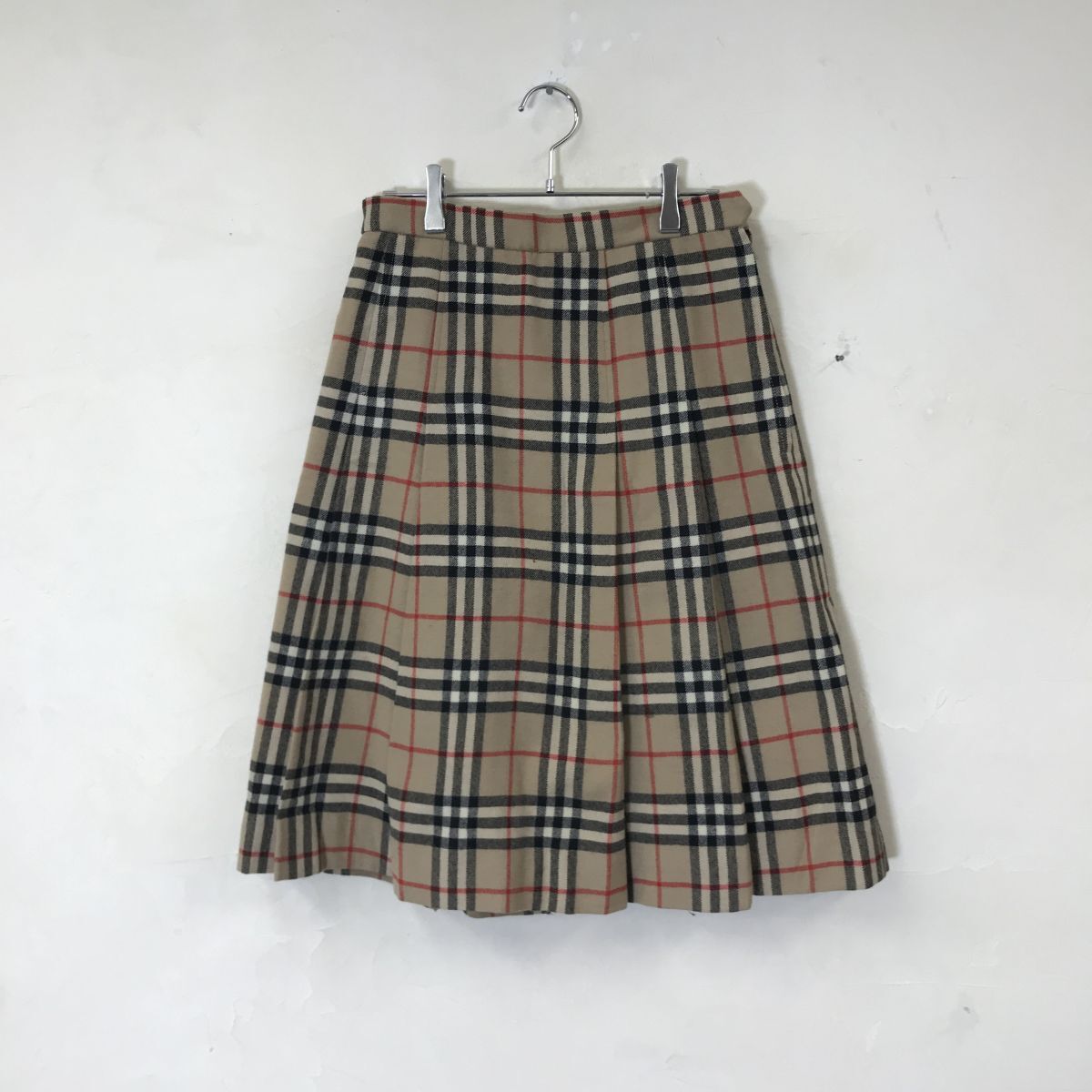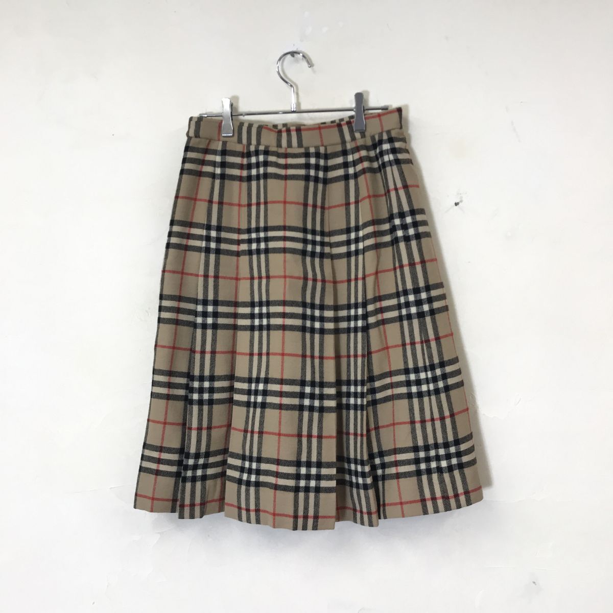 2O1214-Y◆old◆BURBERRYS バーバリーズ プリーツスカート チェック柄 ミディ丈 裏地あり レディース カジュアル ◆sizeS ベージュ 毛