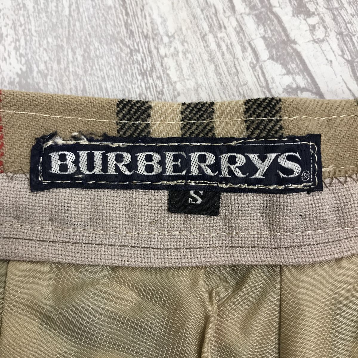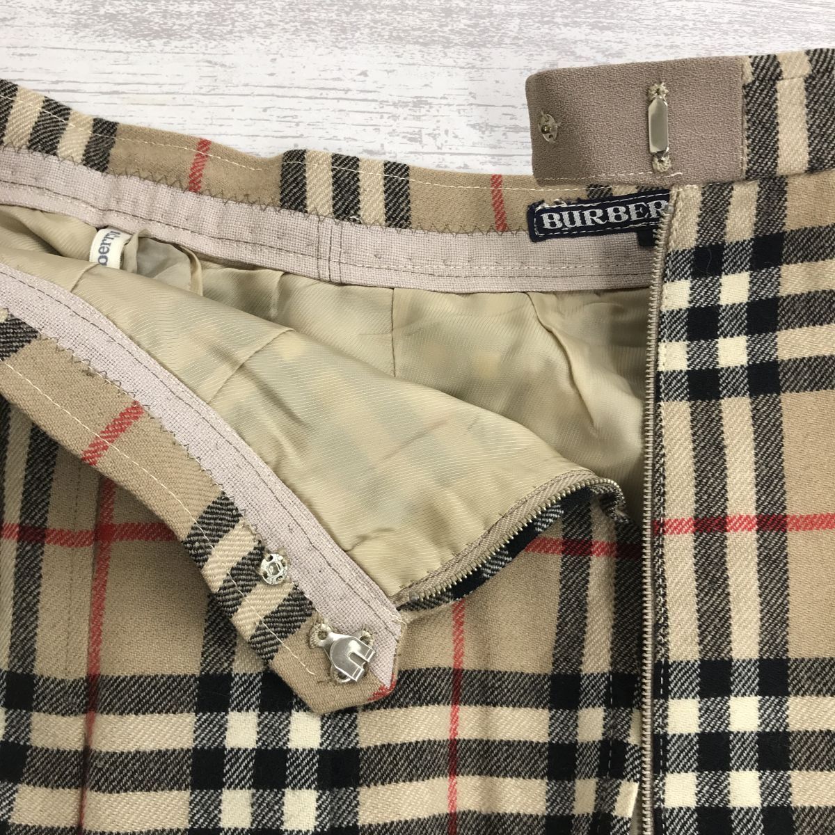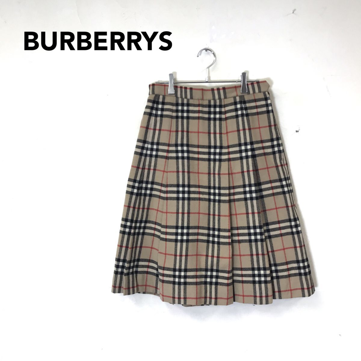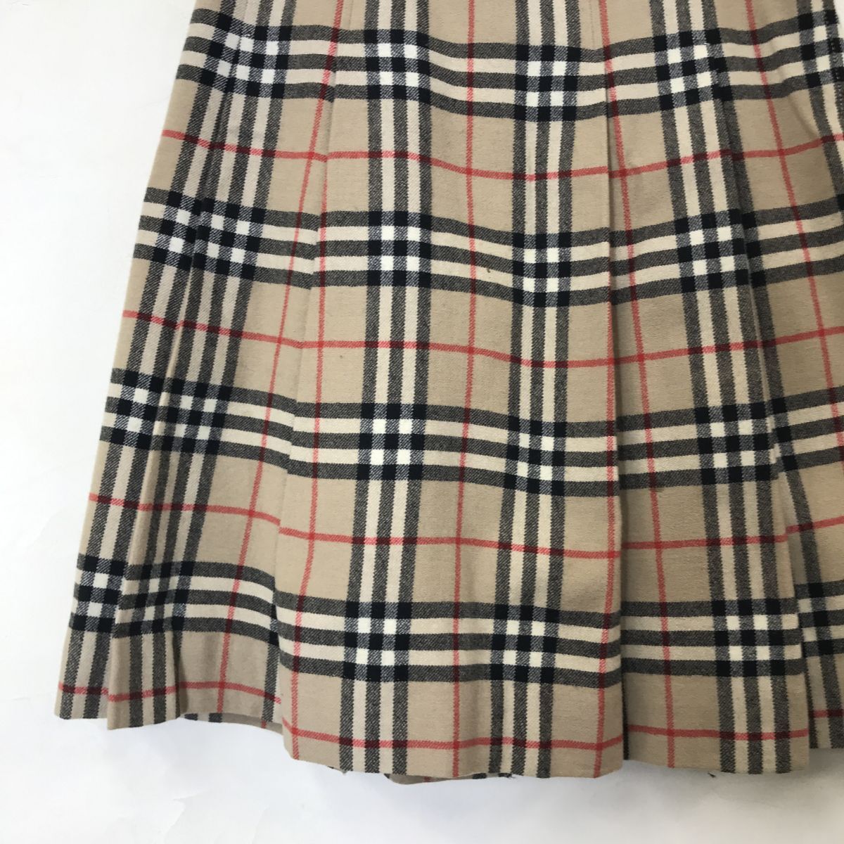 2O1214-Y◆old◆BURBERRYS バーバリーズ プリーツスカート チェック柄 ミディ丈 裏地あり レディース カジュアル ◆sizeS ベージュ 毛