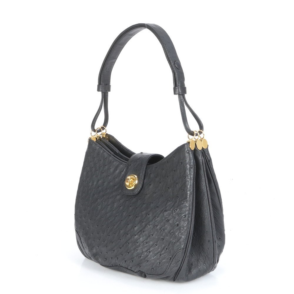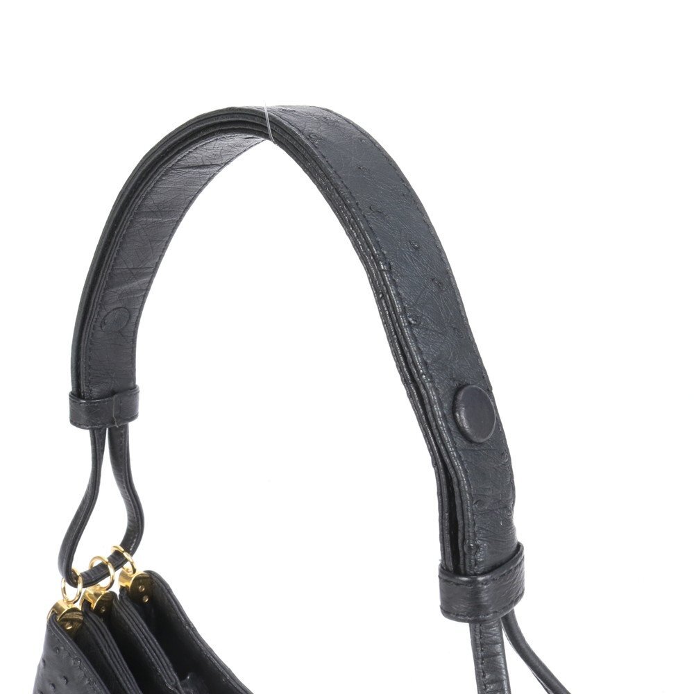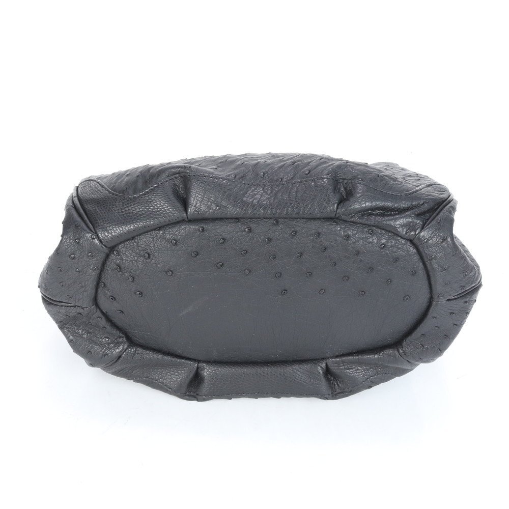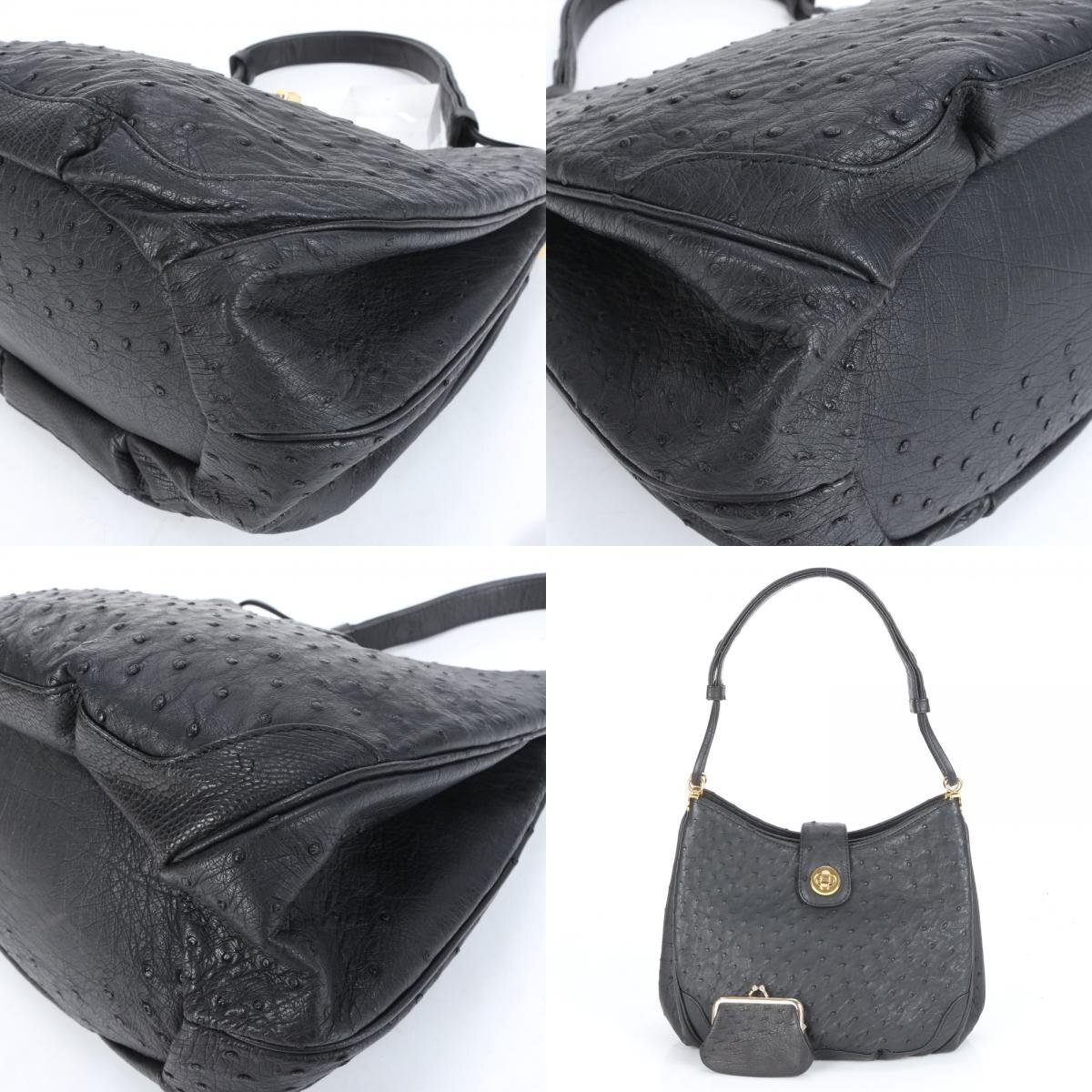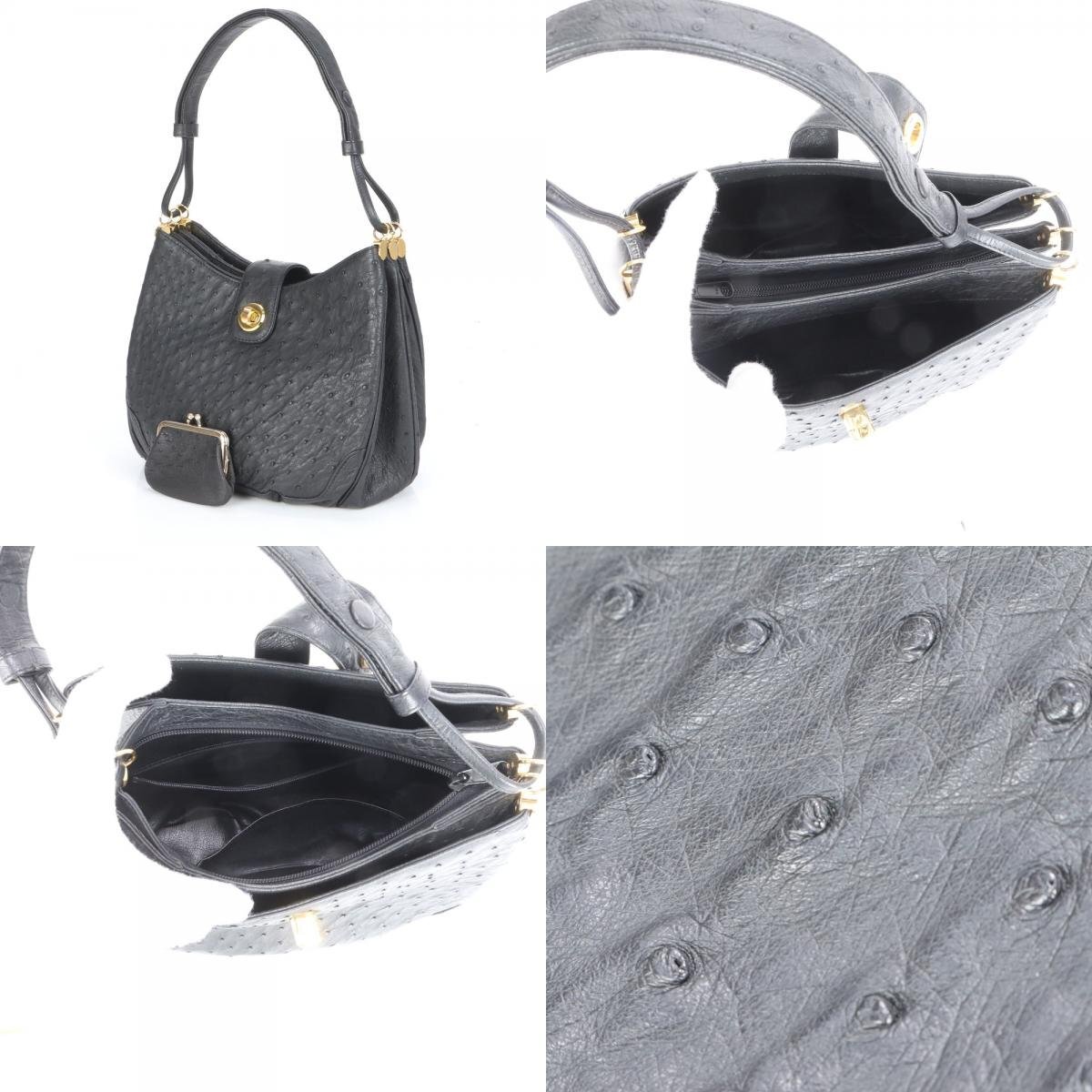 1円 極美品 オーストリッチ レザー 2WAY ホーボー ショルダーバッグ 肩掛け ワンショルダー トート ハンド ブラック レディース EUE CG10-1