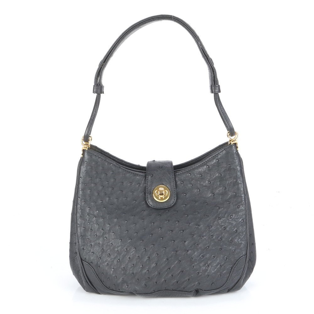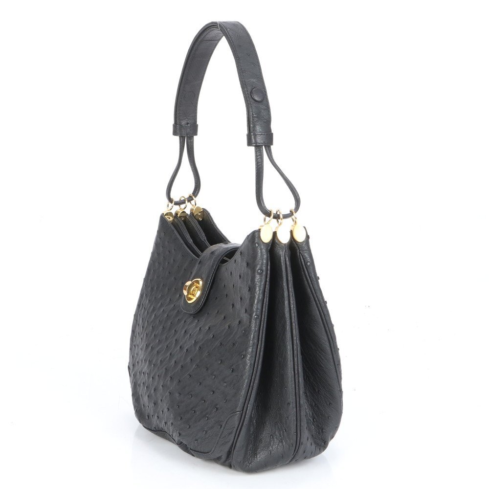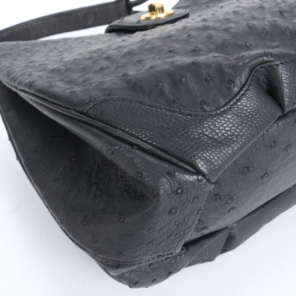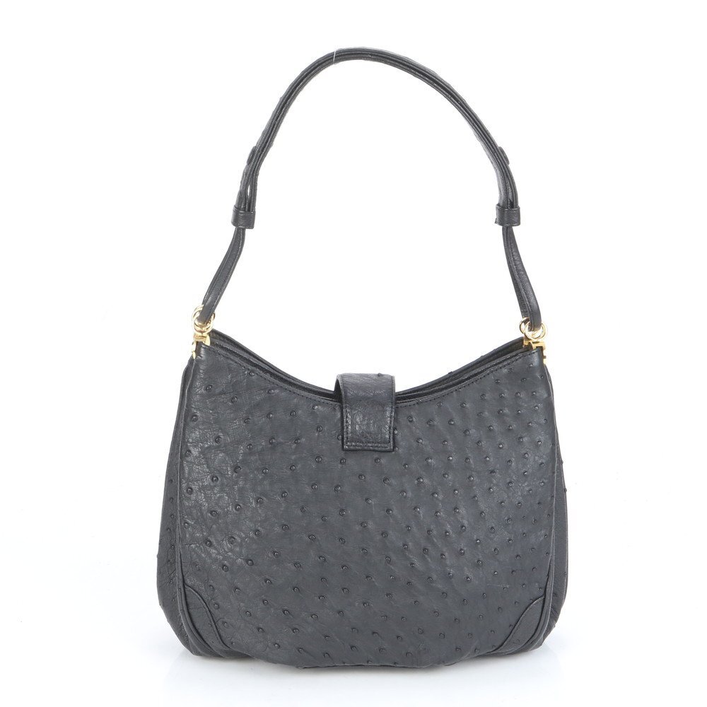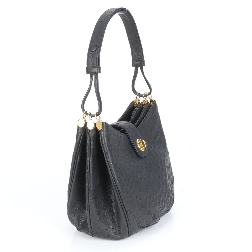 1円 極美品 オーストリッチ レザー 2WAY ホーボー ショルダーバッグ 肩掛け ワンショルダー トート ハンド ブラック レディース EUE CG10-1