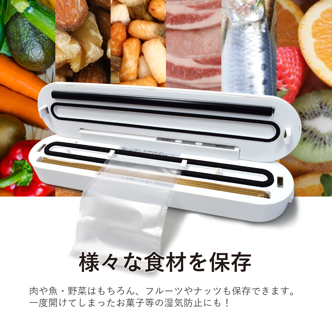 真空密封することで袋の中の空気を減らし、食材の酸化や腐敗を遅らせることで鮮度を長持ちさせます。