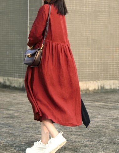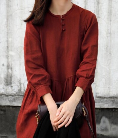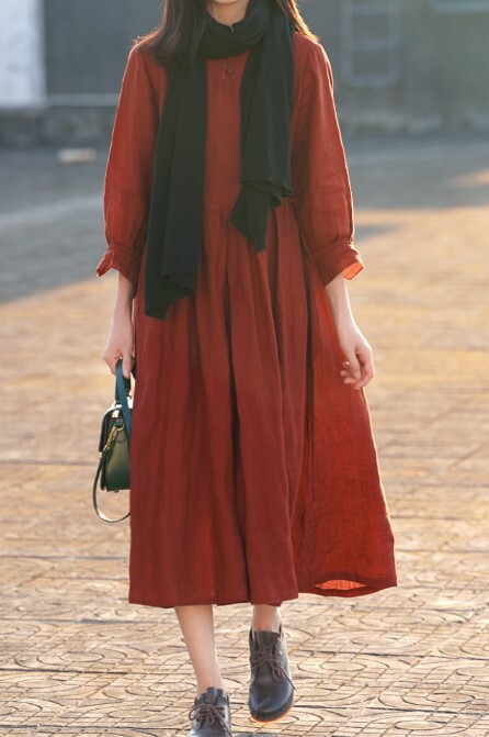 暗い赤のロング丈ワンピです。