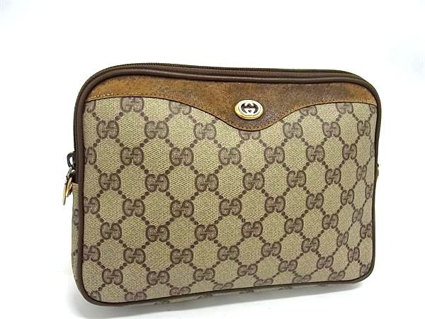 1円 GUCCI グッチ オールドグッチ ヴィンテージ GG柄 PVC×レザー クラッチバッグ セカンドバッグ メンズ レディース ブラウン系 FN6675