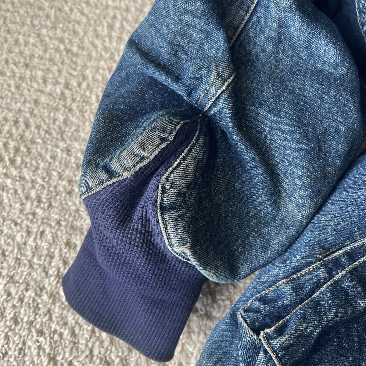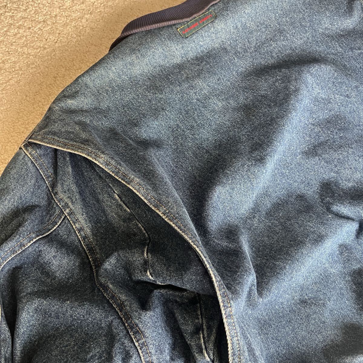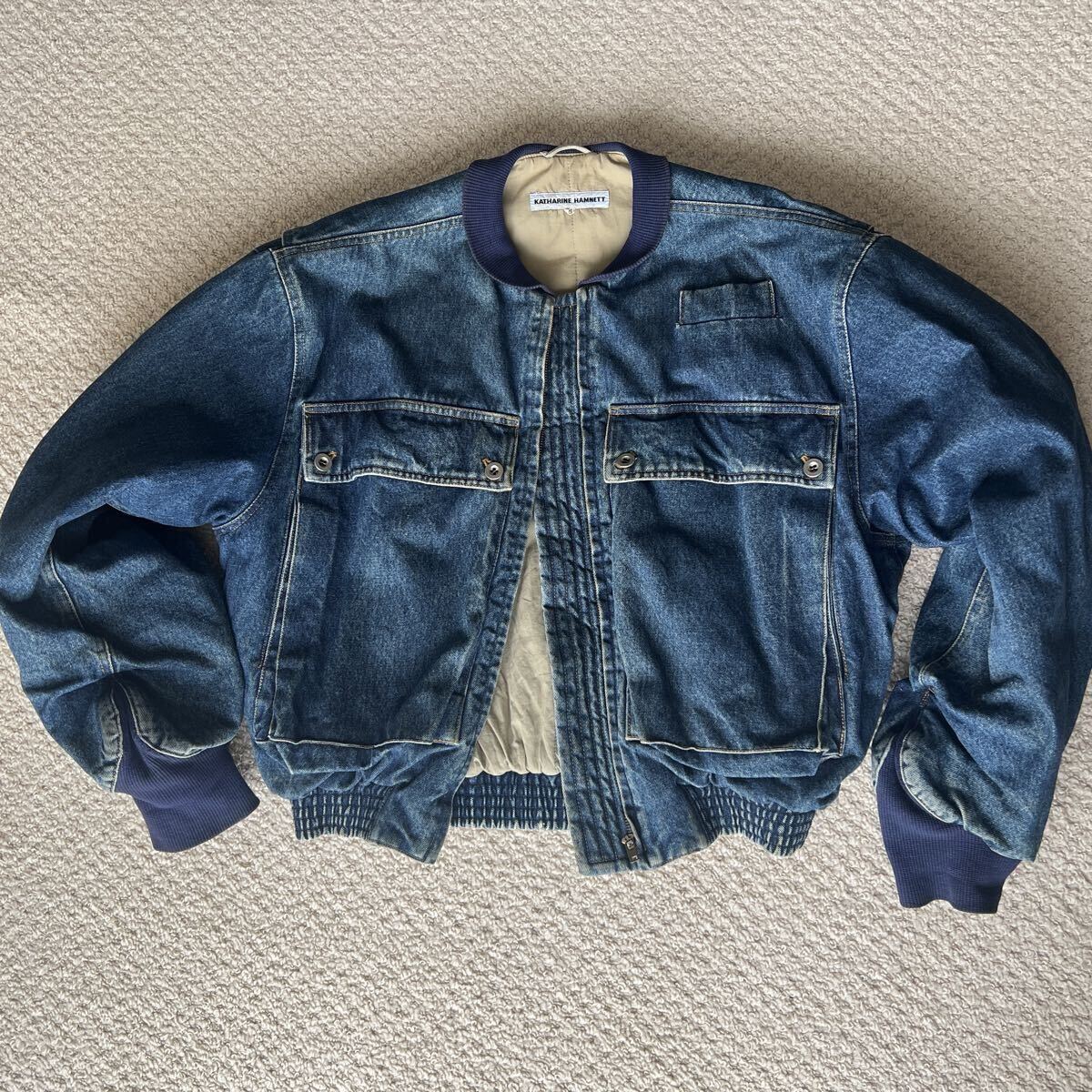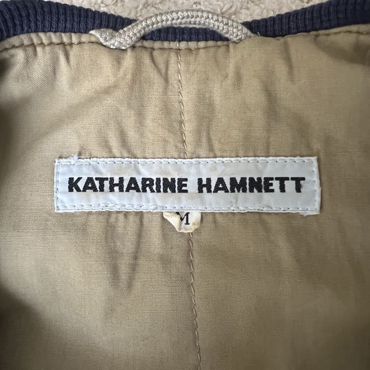10年以上前に東京のヴィンテージショップで購入し、ほぼ着ないまま保管していました。近年値上がりしているキャサリンハムネットのボンバージャケット。短丈で身幅、アーム幅たっぷりの人気型。他で見ないほどの色残り、特大のカーゴポケット。海外の超有名アーカイブショップで高額取引されているのでまだまだ値上がりするかと思います。肩幅約57cm、身幅約80cm、着丈約65cm、アームホール最大幅31cm。想像以上にずっしりしていて真冬でも活躍する分厚いボンバージャケットです。写真着用者173cm細身体型です。主観ですが175cm普通体型 or 180cm細身体型の方に適したサイズ感かと思います。あくまで主観なのでこの情報に対してのクレームは受け付けません。多少の着用感、細かい汚れはございますが古着慣れしている方であれば気にならない程度かと思います。