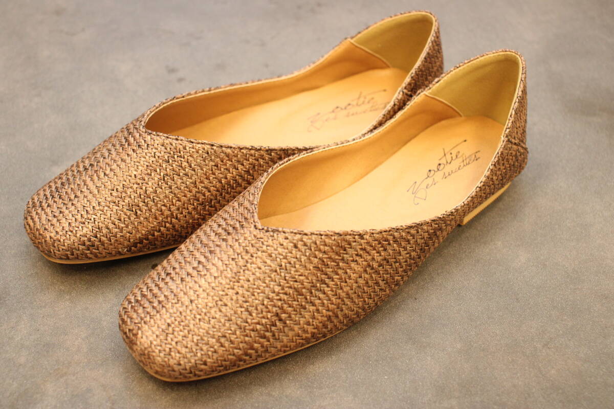 新品 Vカットフラット 編込みシューズ ブラウン LLサイズ 116