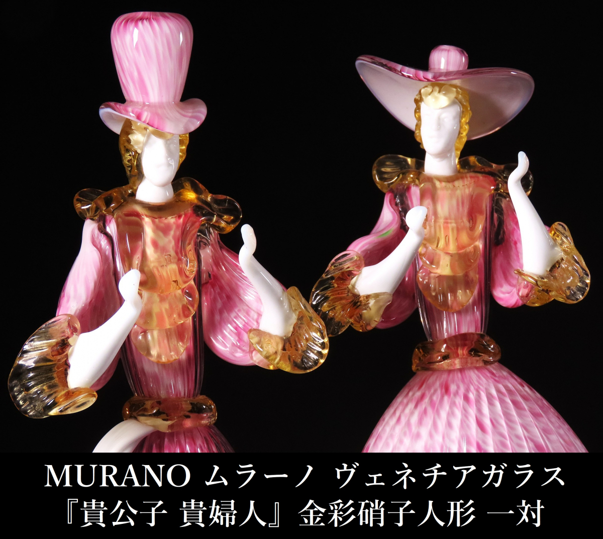 【ONE'S】ヴェネチアガラス MURANO ムラーノ 『貴公子 貴婦人』 ペア 金彩硝子人形 一対 ベネチアングラス イタリア製 工芸ガラス 西洋美術 | |||