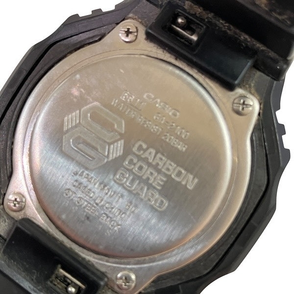 【ブランド】 カシオ 【商品名】 Gショック 【型番】 GA-B2100 【ムーヴメント】 クォーツ 【材質】 カーボン×樹脂 【サイズ】 ケース幅(リューズ含まず)×厚さ×腕回り最少~最大(内径)×重さ 約48mm×12mm×14~21cm×51g 【カラー】 ブラック文字盤 【付属品】 なし 【ランク】 B(使用感あり) 【状態】 風防:小キズあり 文字盤:劣化なし リューズ:小キズあり ケース:小キズあり ベゼル:キズなし ベルトのキズ:小キズあり ※6ヶ月保証(注1 | |