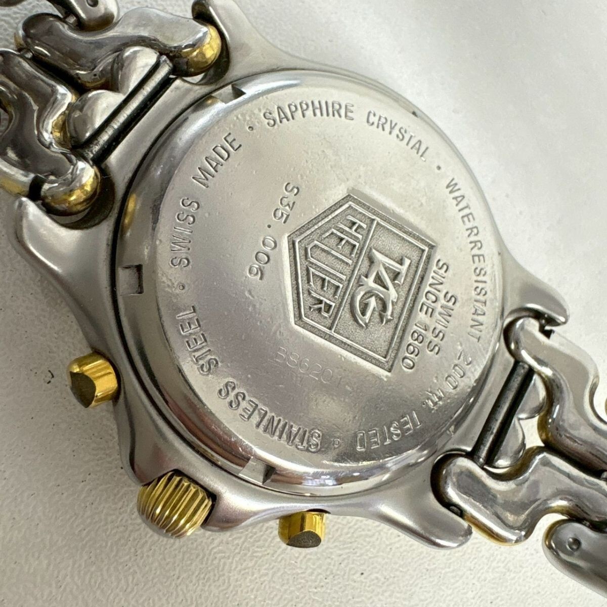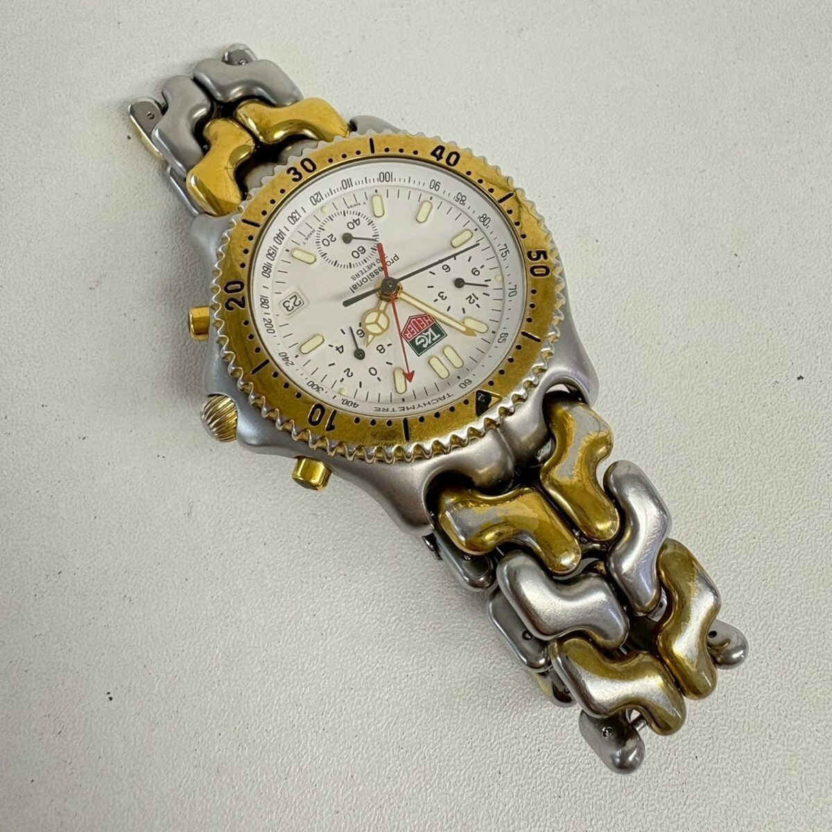 取り扱っている商品は未使用・未開封も含め、全て一度は人の手に渡った一点ものの中古・ジャンク扱いでの商品です。 当方素人ですので肉眼で確認できる簡易的な検品、採寸、および簡易梱包となります。 ※稼働の記載につきましては秒針等の確認のみとなり、全体の動作を保証するものではございません。 また、出品時の中古品の動作状況となりますので、予めご了承の上でご入札ください。 不動の表記につきましてはクォーツ式のムーブメントの場合、動作未確認の状態となります。 電池交換後、不具合があった場合でも返金、返品の対象とはなりませんので、予めご了承くださいますようお願い致します。 細かな日差、オーバーホール状況、社外パーツの使用に関しては保証しかねますので、ご理解いただけた上でのご入札をお願い致します。 上記を踏まえた上で中古品、ジャンク商品として出品させていただいておりますので、全てご理解いただけた上でのご入札をお願いいたします ------------------------------------------------------------------------- 【メーカー】 TAG HEUER 【モデル名】 セル クロノグラフ 【型番】 S36.006 【シリアル】 B86201 【サイズ】 直径約4.3cm 腕回り約17cm 【付属品】 画像参照 【稼働状態】 稼働 【その他状態】 リューズ動作 時間:OK 日付:OK 曜日:- リューズ上下ボタン欠けあり ベルト剥げあり クロノグラフ・ベゼル動作OK ------------------------------------------------------------------------- 画像にあるものが全てです。 他詳細は画像にてご判断ください。 ※目立つ傷や汚れを中心に写真を撮っておりますが、画像に写りきっていない傷等がある場合もございます。予めご了承ください。 ※商品を多数出品している関係で、稀に商品説明や画像に誤りがある場合がございます。予めご了承ください。 こちらのページをご覧いただく際は、商品説明文と掲載している画像の全てを確認いただいた上でご入札ください。 | |||||||