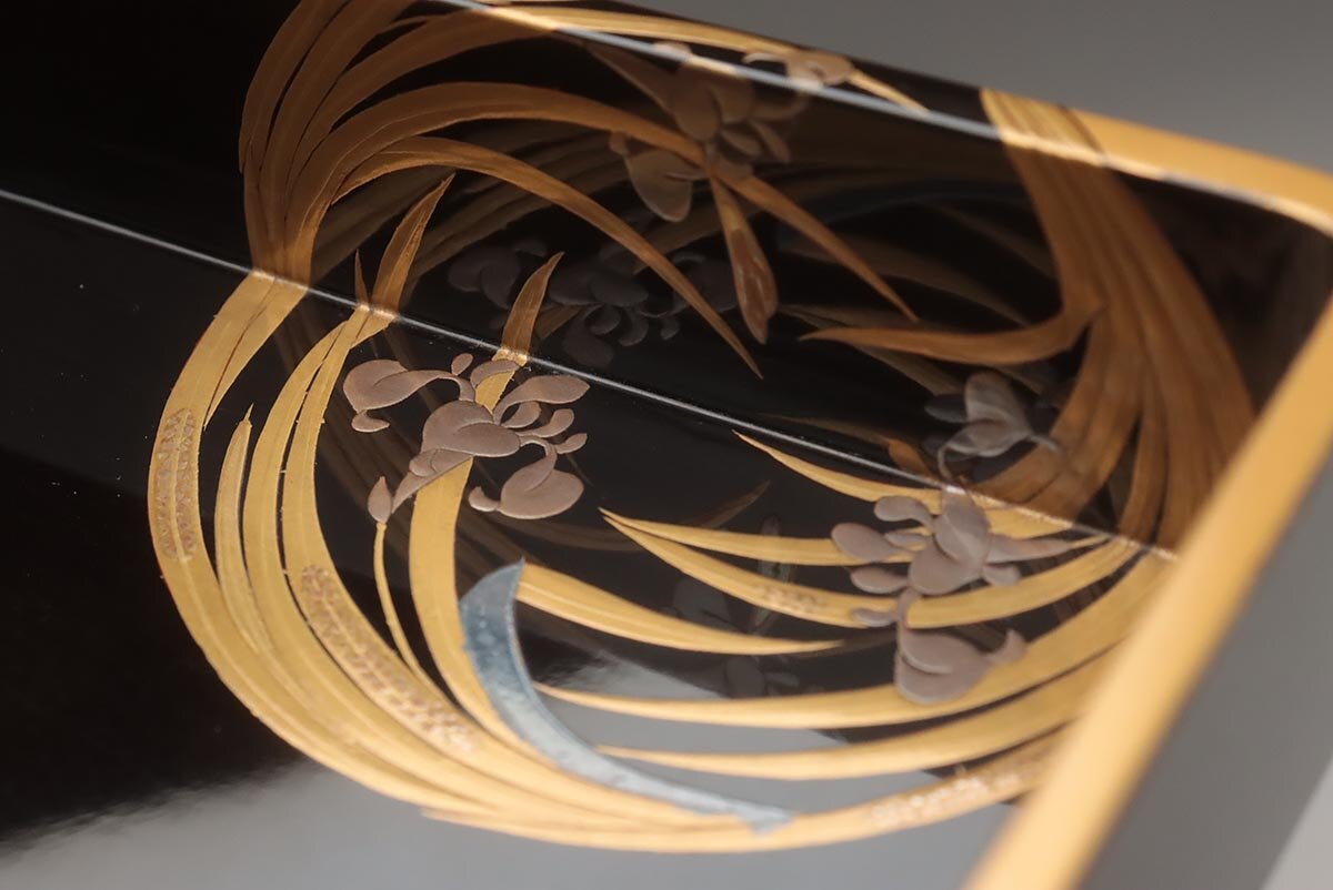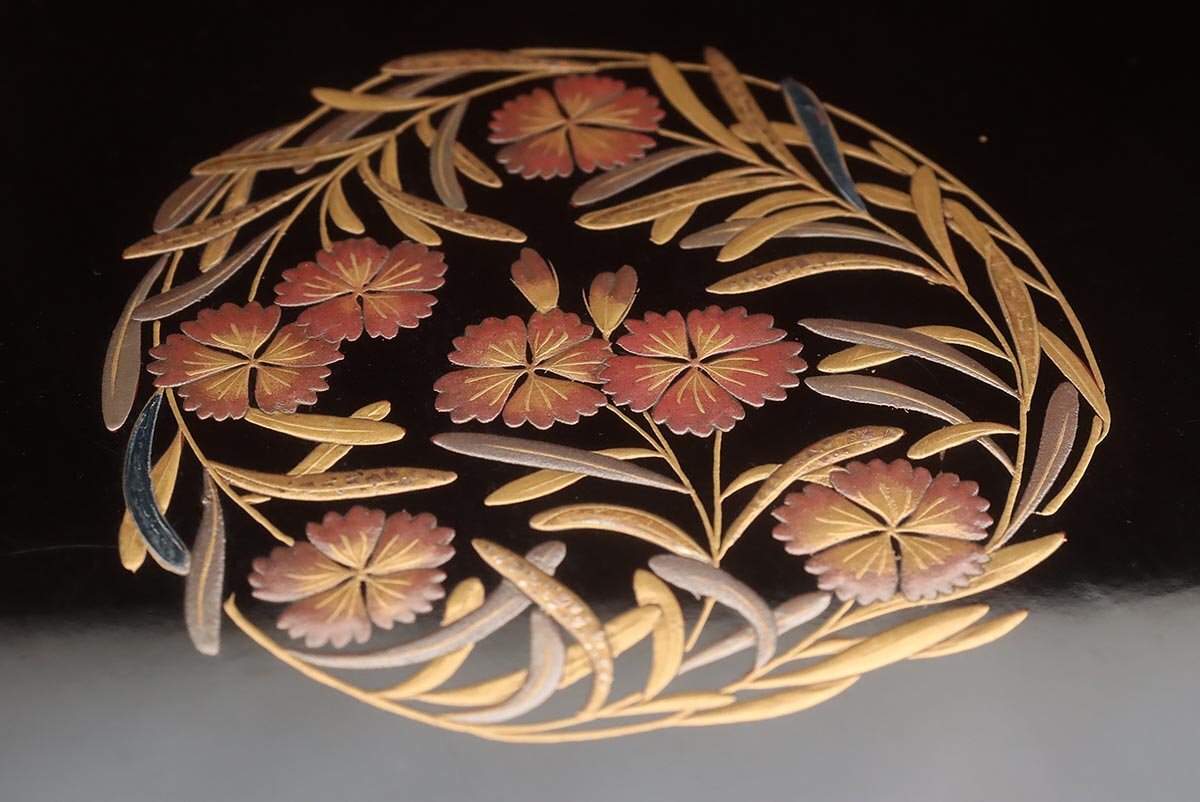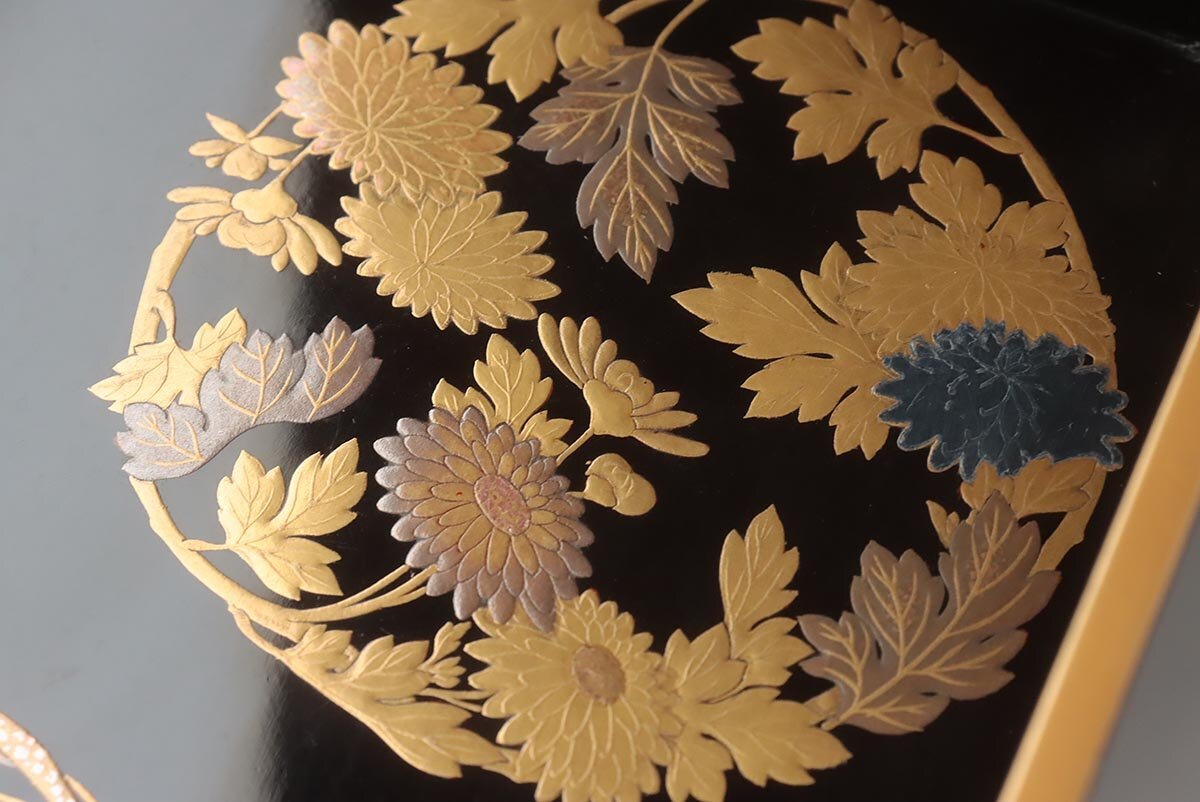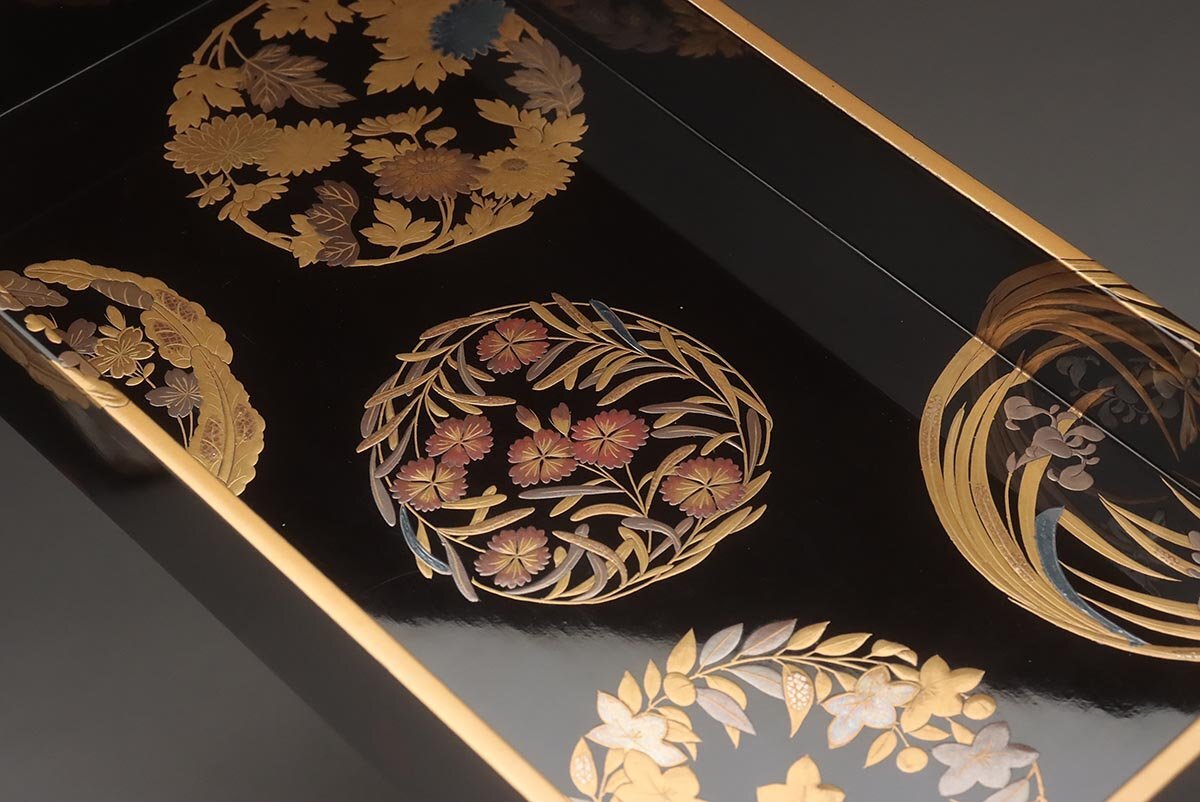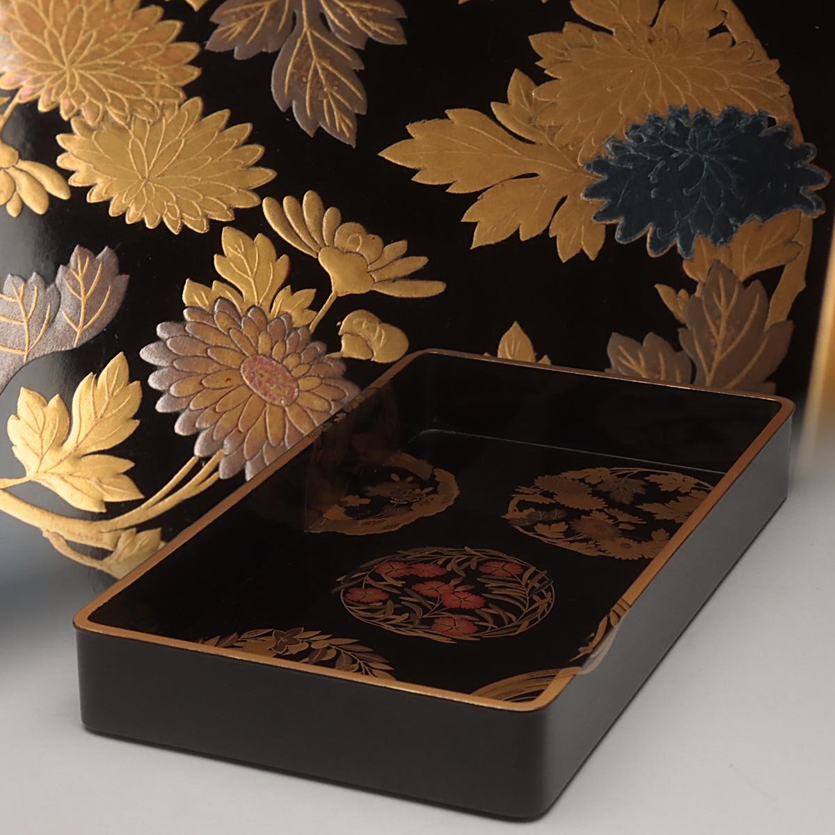◆ 時代漆器 黒漆塗 縁金 花丸蒔絵硯蓋 幅26.2cm 木箱附・蒔絵長方盆・蒔絵盆 漆工芸 古美術品 ◆