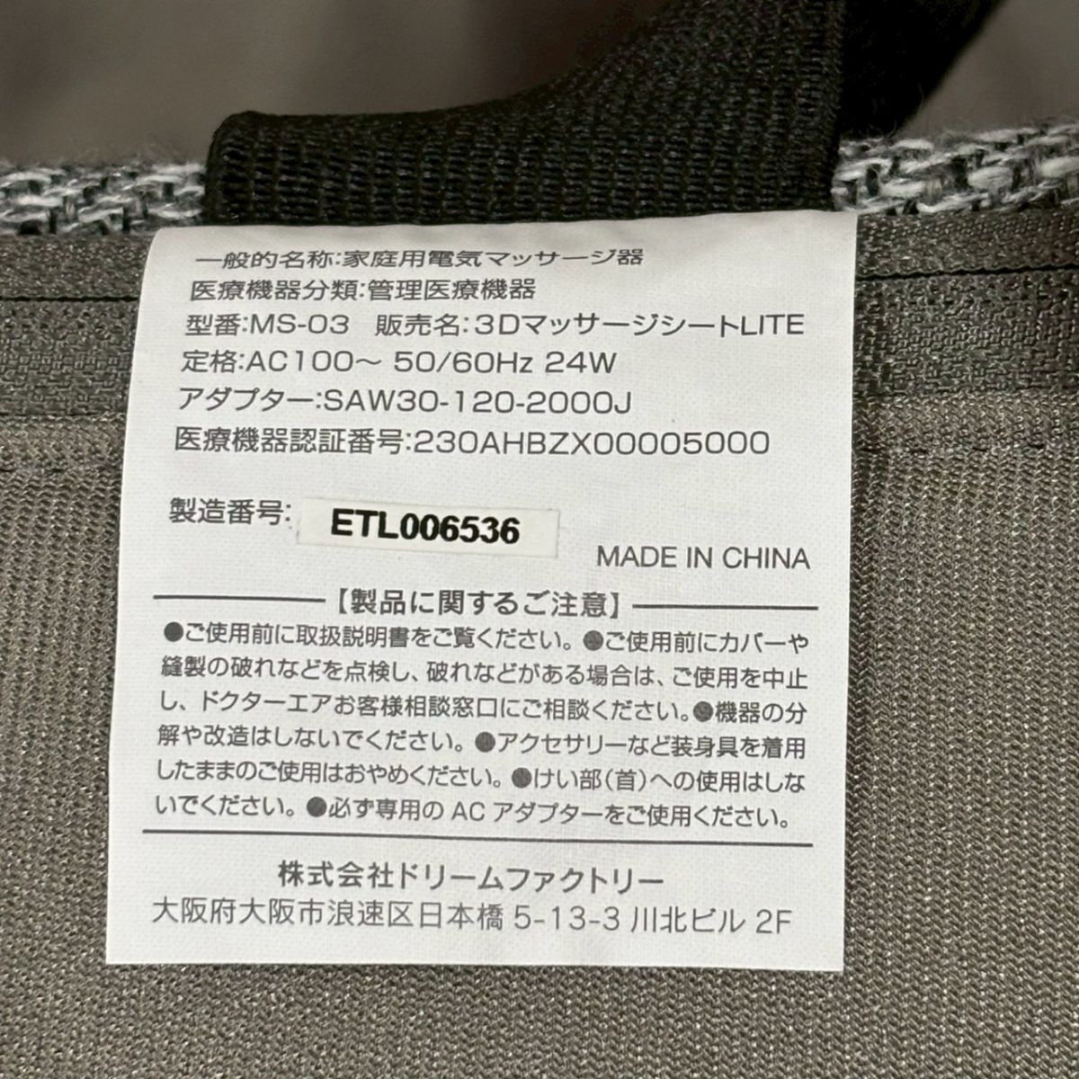 AIM302Y DOCTORAIR ドクターエア 3DマッサージシートLITE 家庭用電気マッサージ器 MS-03 グレー系 | |||
