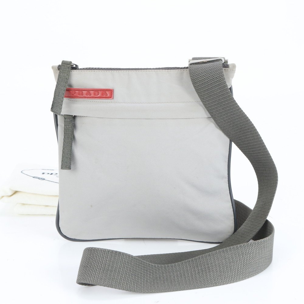 1円■美品■プラダ スポーツ■ショルダーバッグ 斜め掛け メッセンジャー ビジネス 通勤 グレー トート 4VA032 メンズ RCE CU12-6