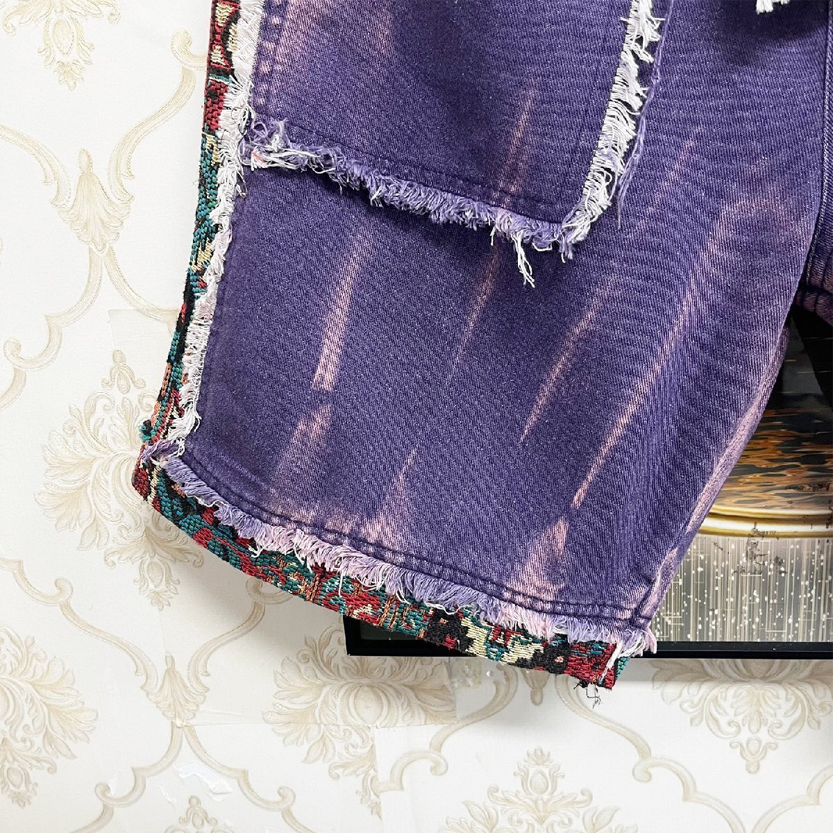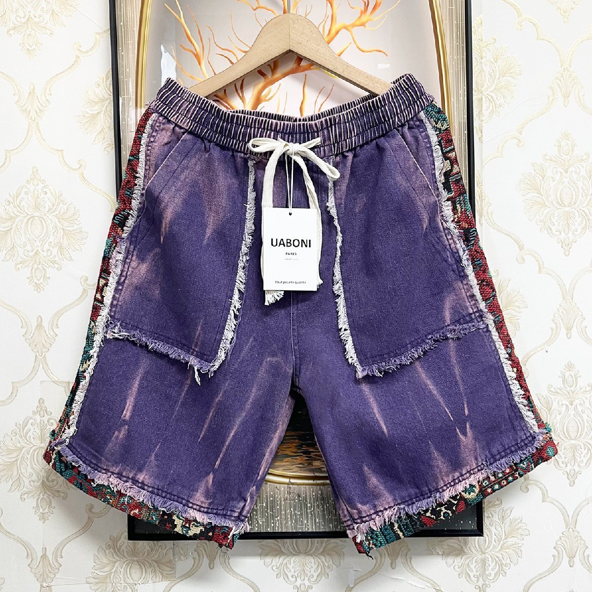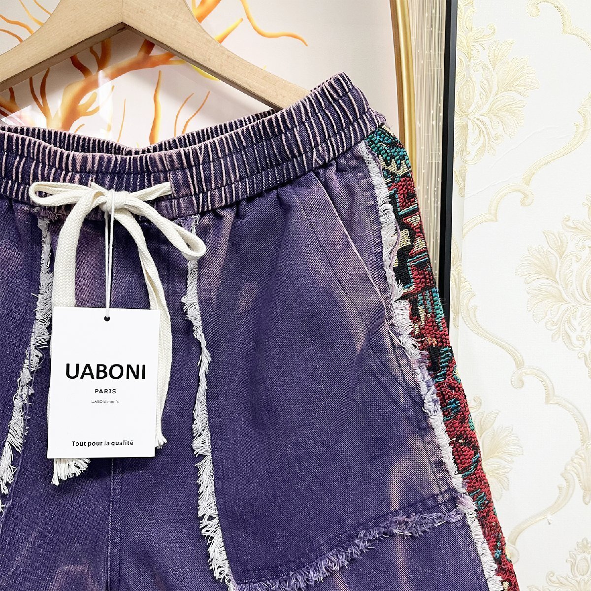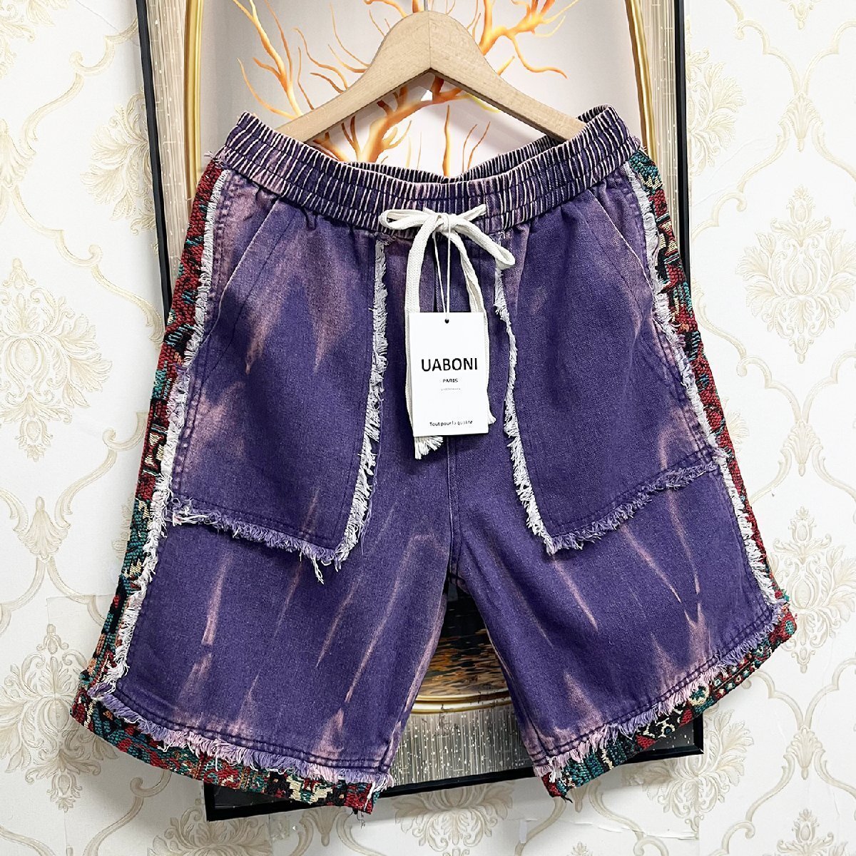 個性EU製&定価3万◆UABONI*Paris*ショートパンツ*ユアボニ*パリ発◆ソフト 快適 ダメージ加工 切替 デニム 短パン 半ズボン 夏 L/48サイズ