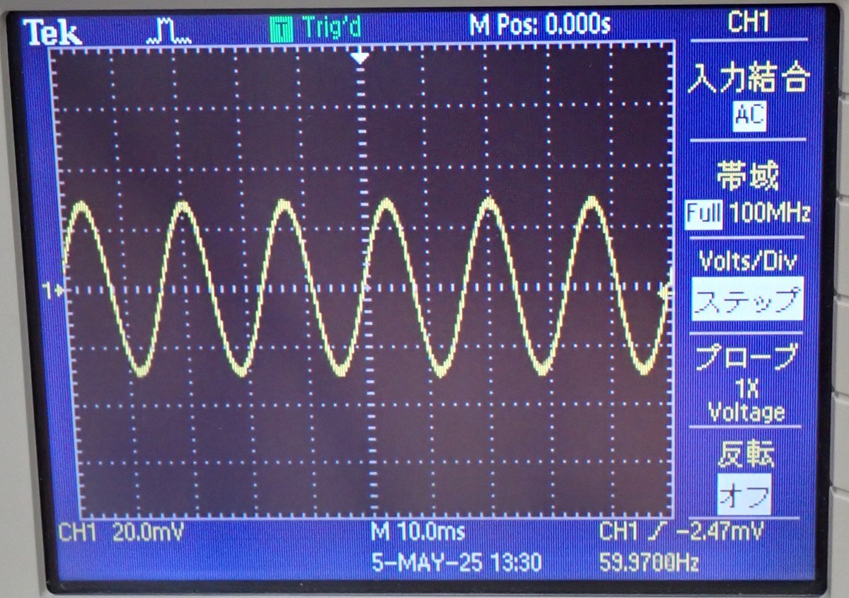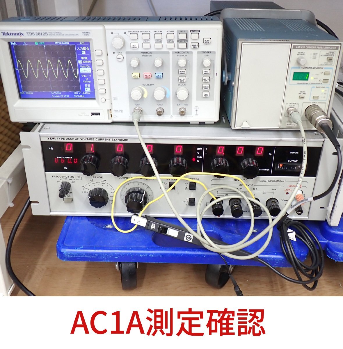 ■オシロスコープ・プローブアンプに接続し、交流標準電圧電流発生器の出力電流(AC1A)の測定確認を行いました。 ※精度を保証するものではありません。 ■当店では、上記以外の動作確認は行っておりません。 | ||||||||