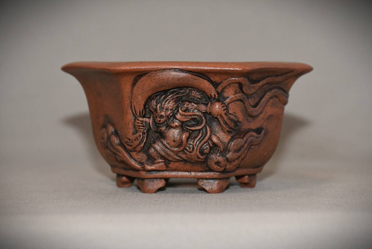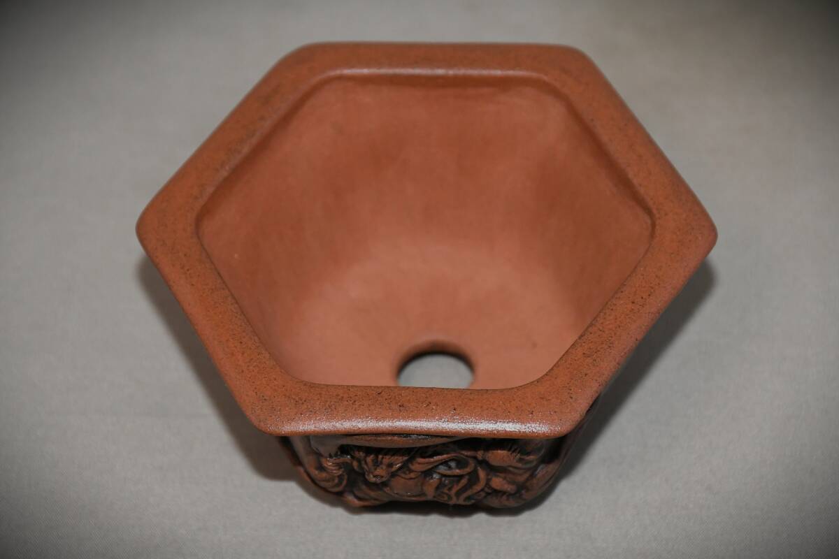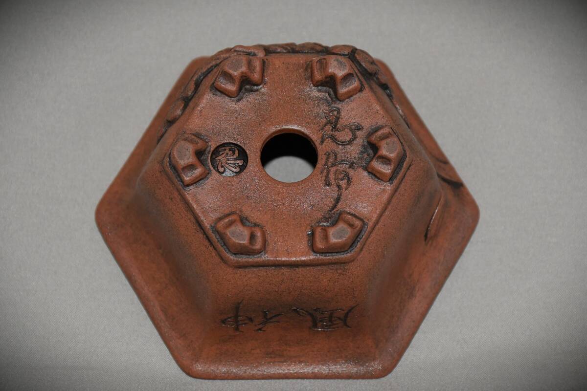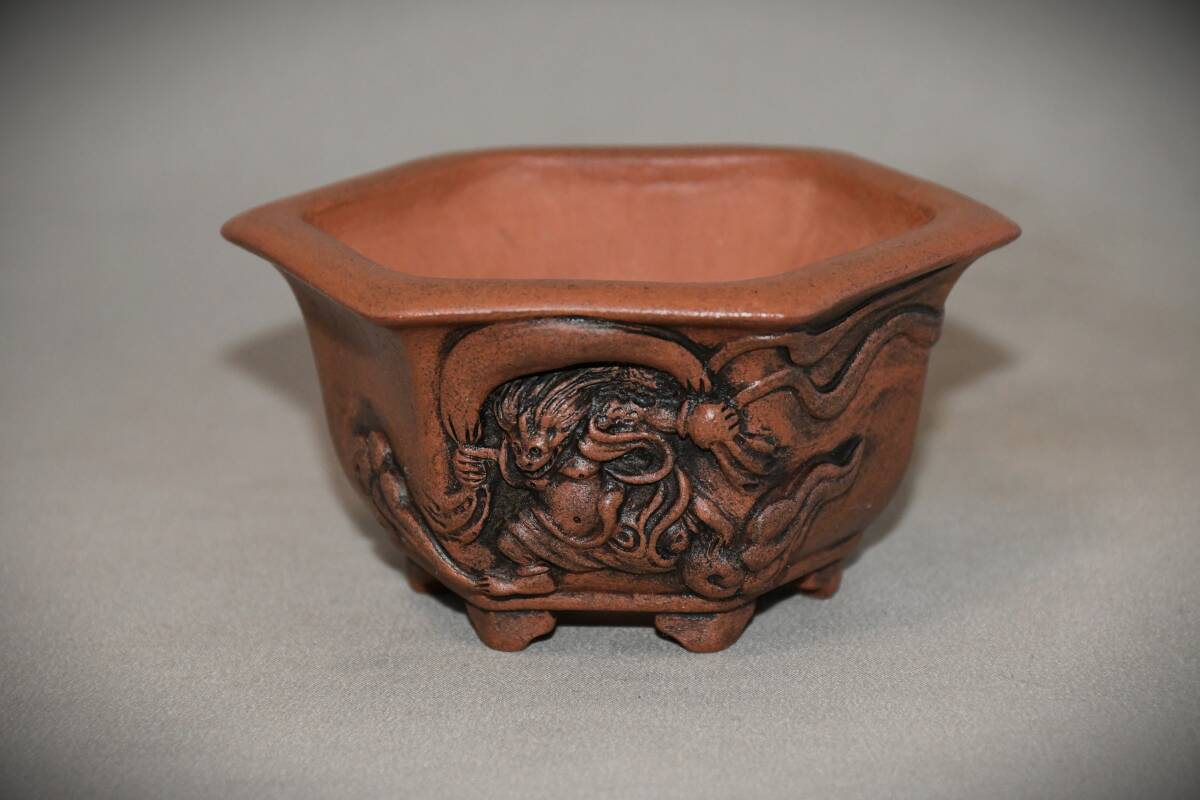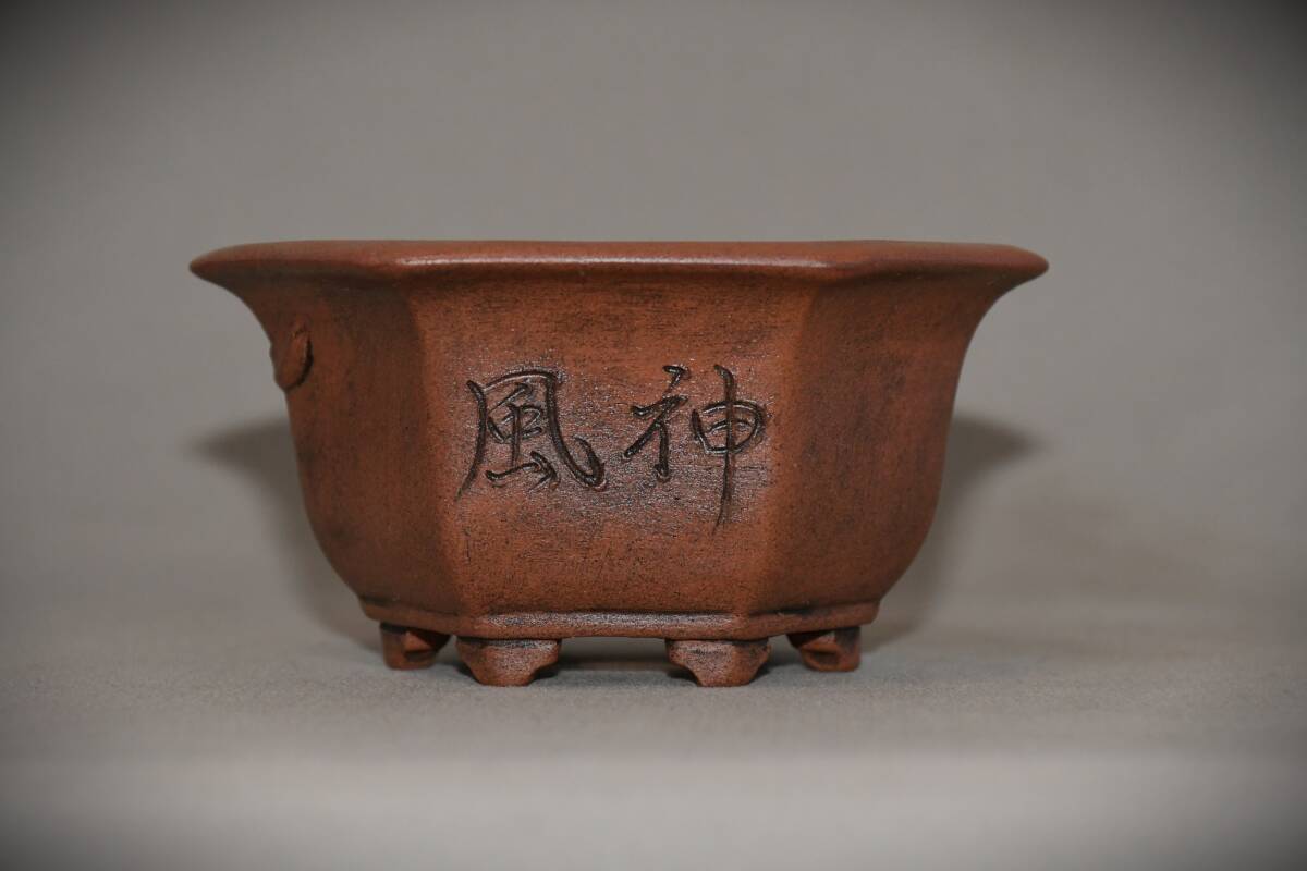 ☆盆栽小鉢【風神浮彫段足六角】雨宮忍作 巾11cm |