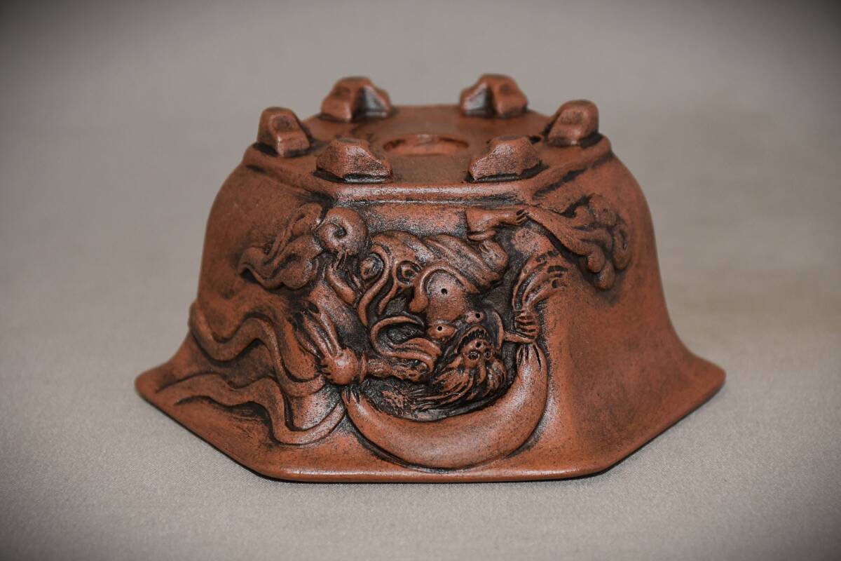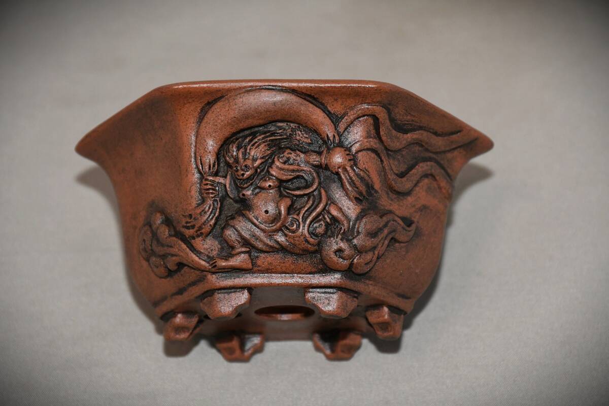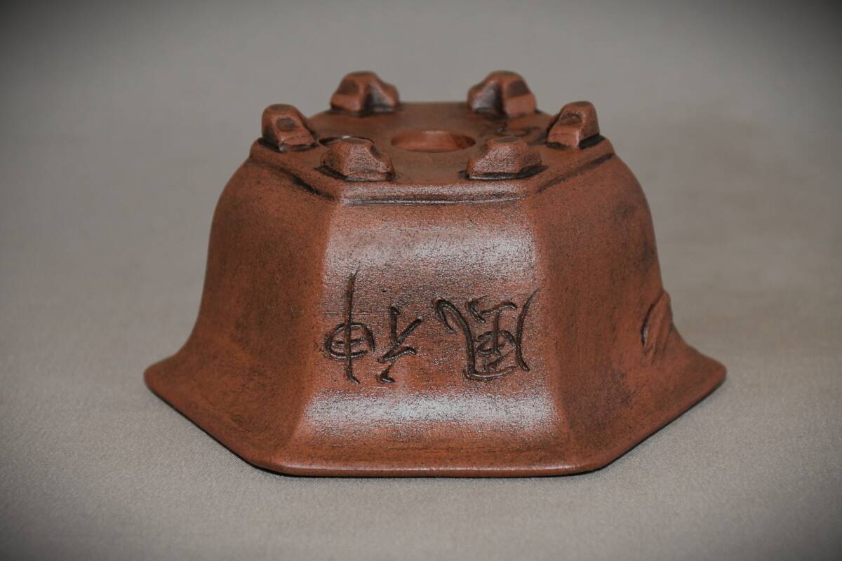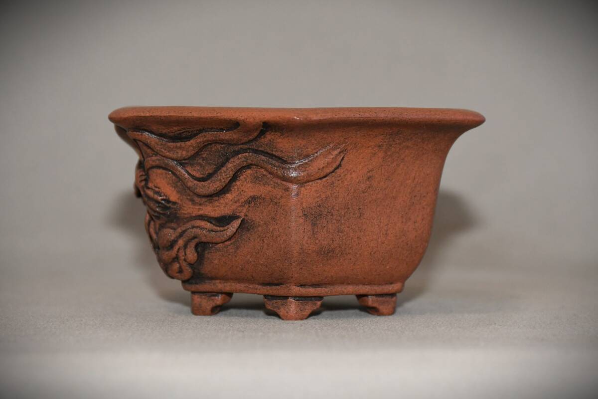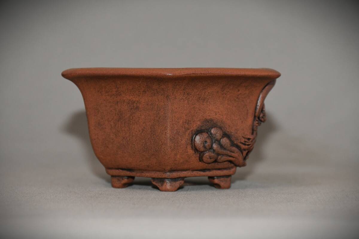 ☆盆栽小鉢【風神浮彫段足六角】雨宮忍作 巾11cm |