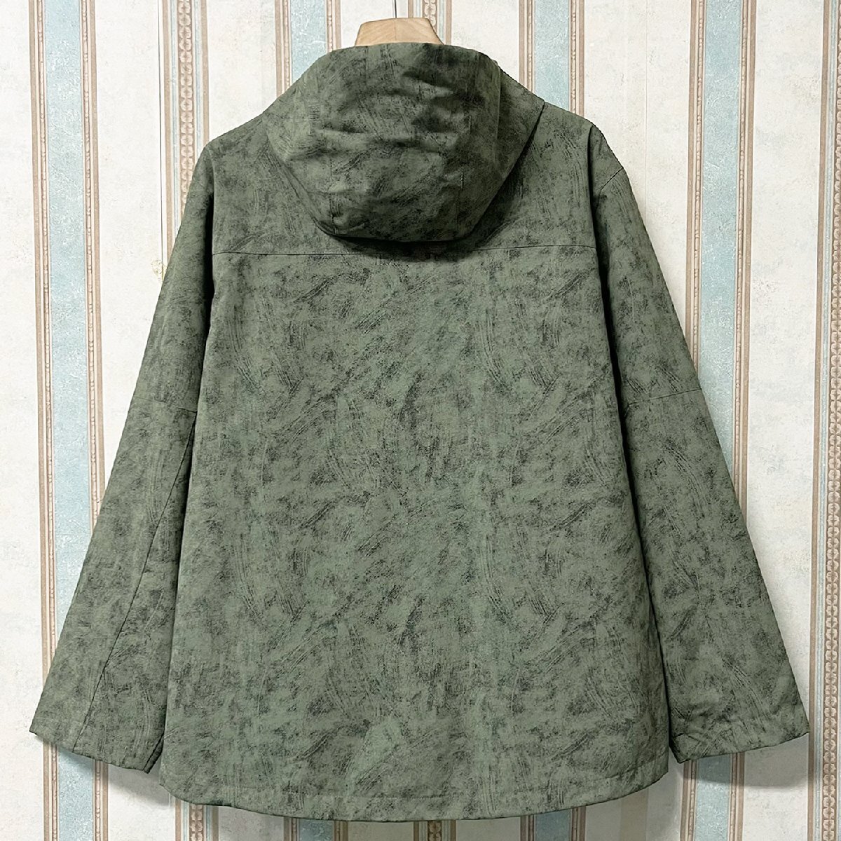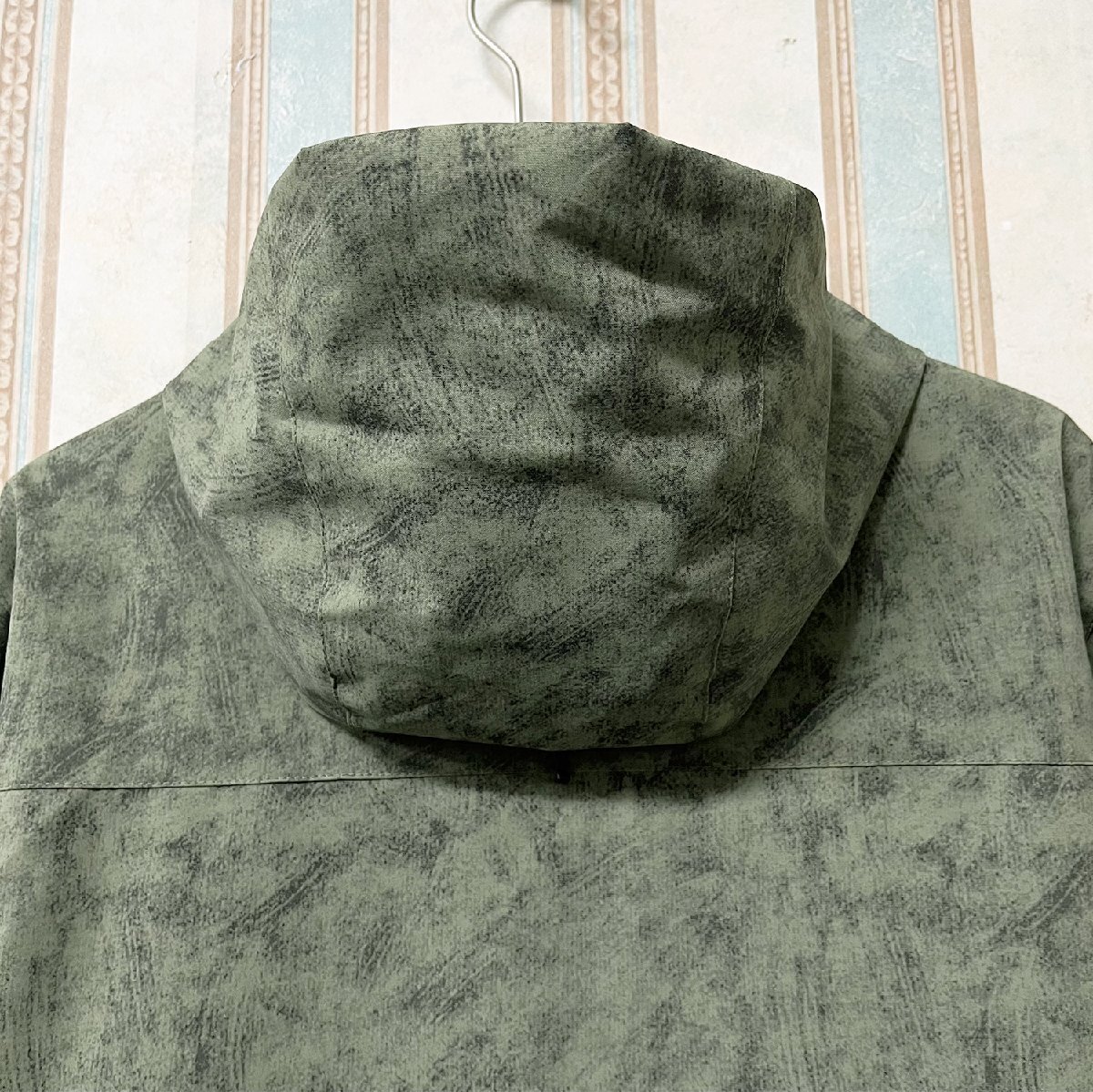 タイダイ染めが施されており、個性を引き立てながらも、派手すぎず落ち着いた印象に仕上がっています。ファスナーで首まで引上げ可能で、外部の冷たい空気を遮断することができます、しっかりと首まわりを保護されます。フードと裾は紐でサイズ感を調整することが出来るので、寒い時はきつめに紐を縛ることによって防寒対策も可能です。袖口には調整可能なマジックテープが施されており、風の侵入を防ぎながらぴったりとフィットさせることができます。両サイドには便利なポケット、さらに胸元にもポケットを備えており、必需品を収納できる十分な収納スペースを提供します。
