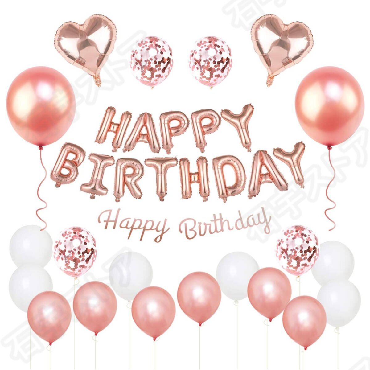 誕生日 バルーン飾り付けセット バースデー 飾り HAPPY BIRTHDAY文字風船 紙吹雪風船 誕生日パーティー イベント装飾 ピンク shw285.2