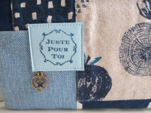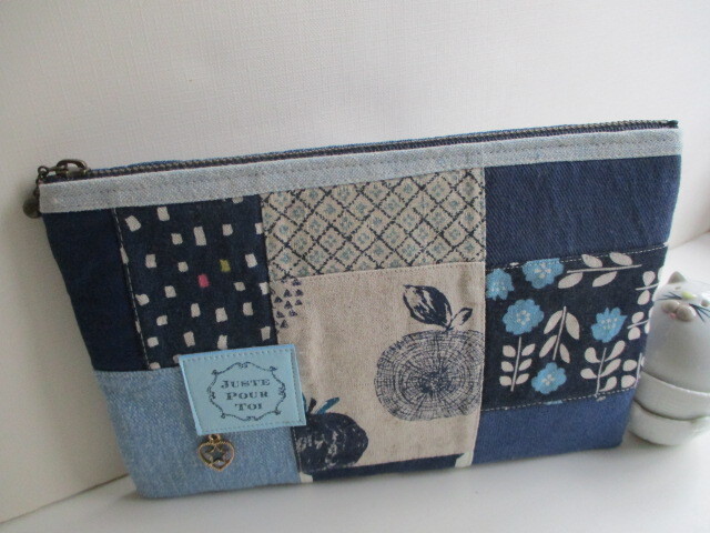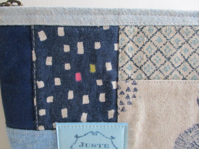 綿麻 綿等パッチした 通帳ポーチです