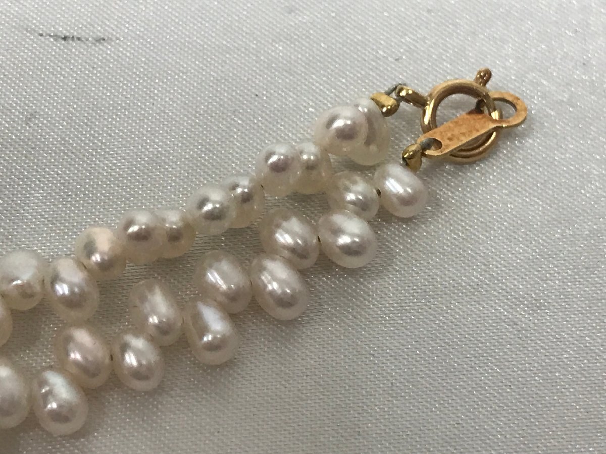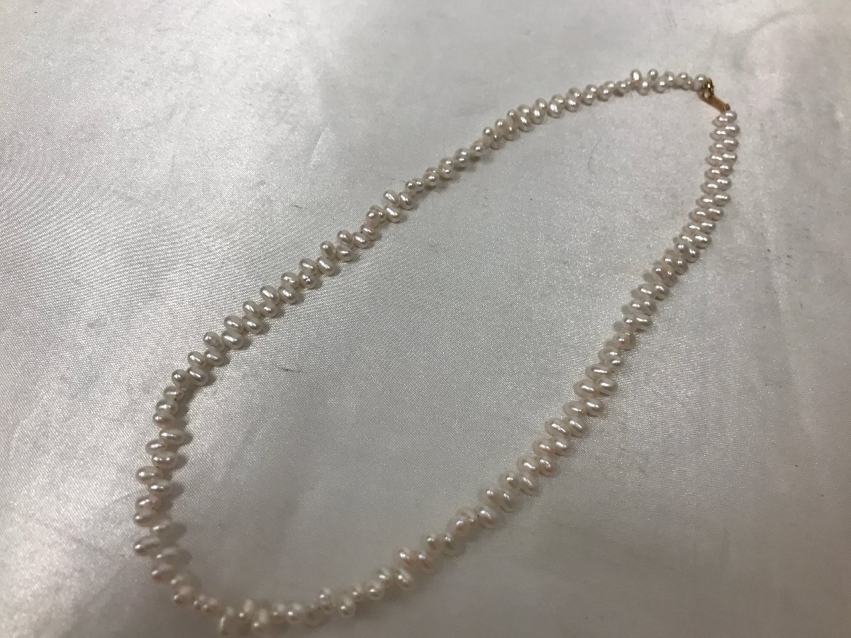 型番・製造番号・サイズ | 留め具:K18 首回り:40cm 珠:淡水パール4mm強 |