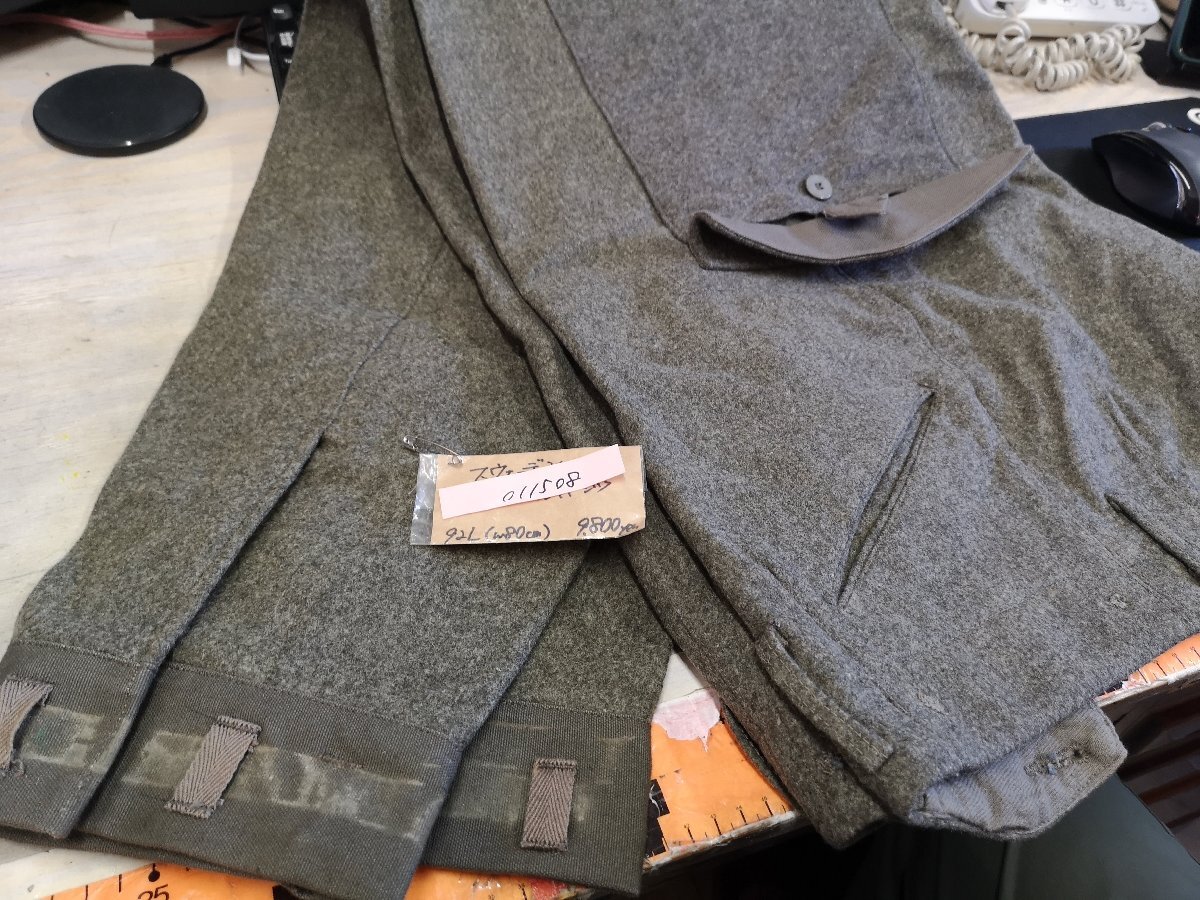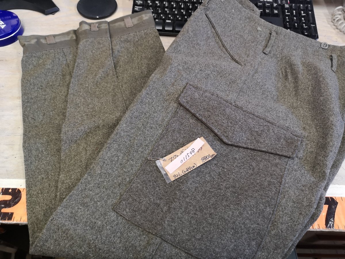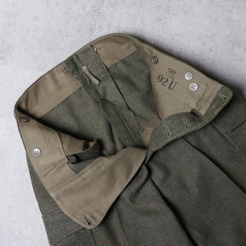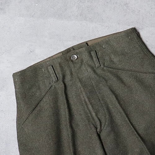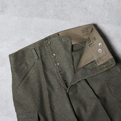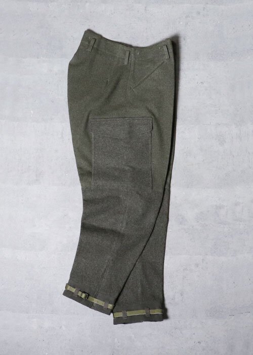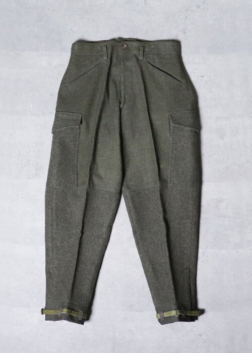 スウェーデン軍で40-50頃に採用されていたM39ウールカーゴパンツです。画像の7枚目までは流用です。出品は8.9.10枚目の写真が出品現物になります。裾のレザーのストラップが付属してないです。 生地は肉厚な起毛ウールを使用したカーゴパンツです。 ゆったりとしたヒップ周りから裾にかけてテーパードしたシルエットが特徴的なパンツは、ウエストのサスペンダーボタンやボタンフライの前立てなど、クラシカルな印象のアイテムです。 高密度のウールで保温性が高くアウトドアなシーンにも最適でアーバンスタイルやシティーファッションとしても落とし込みやすいアイテムです。また、ウール地のカーゴパンツは他国でもあまり見かけないデザインです。 近年、スウェーデン軍アイテムの注目度、人気度は増しておりミリタリー市場でも値段の高騰や入手困難なアイテムになってきております。 ●素材:ウール ●状態:デッドストック サイズ92L ウエスト80cm、全長112cm、股下83cm、太腿幅35cm程度です。 沖縄離島を除く全国500円でお送りいたします、落札価格にプラスでお願いいたします。1.2.3.4.5.6枚目の写真は流用です。
