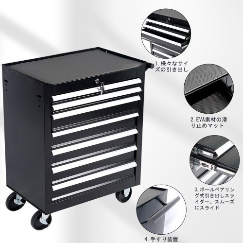 ローラーキャビネット 7段 ロールキャビネット ツールキャビネット ツールボックス 大型キャスター ブラック 1.9