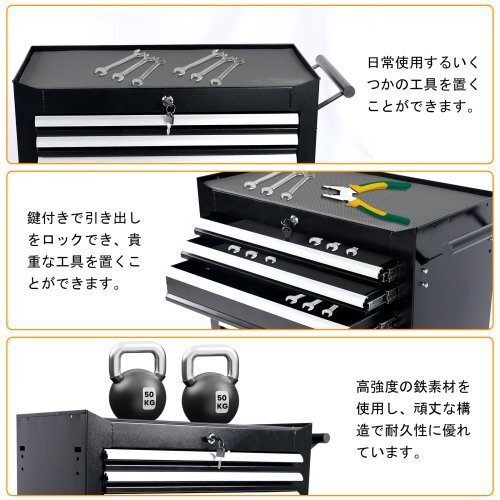 • 2.【キャスター付き】2つの自由キャスターと、2つのロック機能付きキャスターがあり、どんな作業環境でも簡単に移動できます。各引き出しにはEVA防滑マットが付いており、ツールボックスの移動中にツールを効果的に保護します。