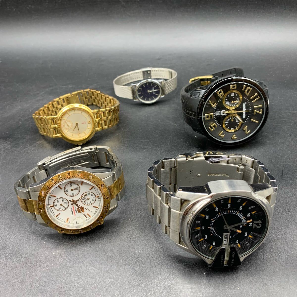 M255 稼動品含む 腕時計 5本 まとめ売り DIESEL ディーゼル ELGIN エルジン Tendence TISSOT TRUSSARDI ゴールドカラー コンビ デイデイト