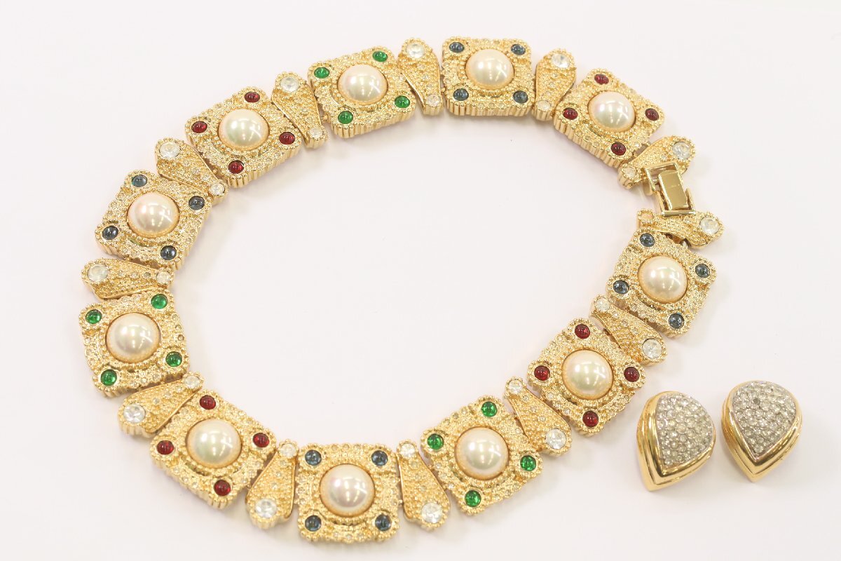 【2点】D'ORLAN ドーラン フェイクパール ラインストーン ネックレス イヤリング ゴールドカラー レディース アクセサリー 2759-K | |