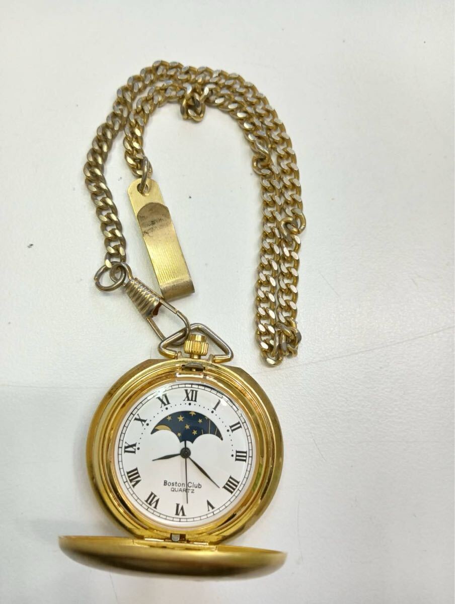 Boston Clubボストンクラブ 懐中時計 クオーツ ゴールド 白文字盤 時計 現状品